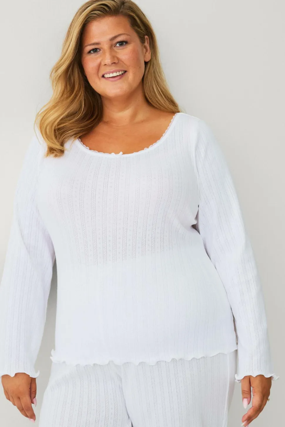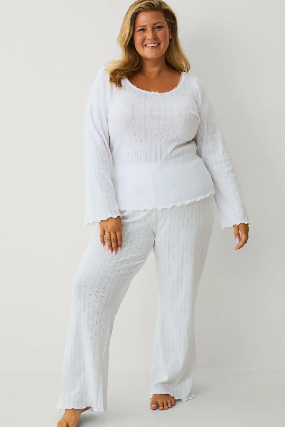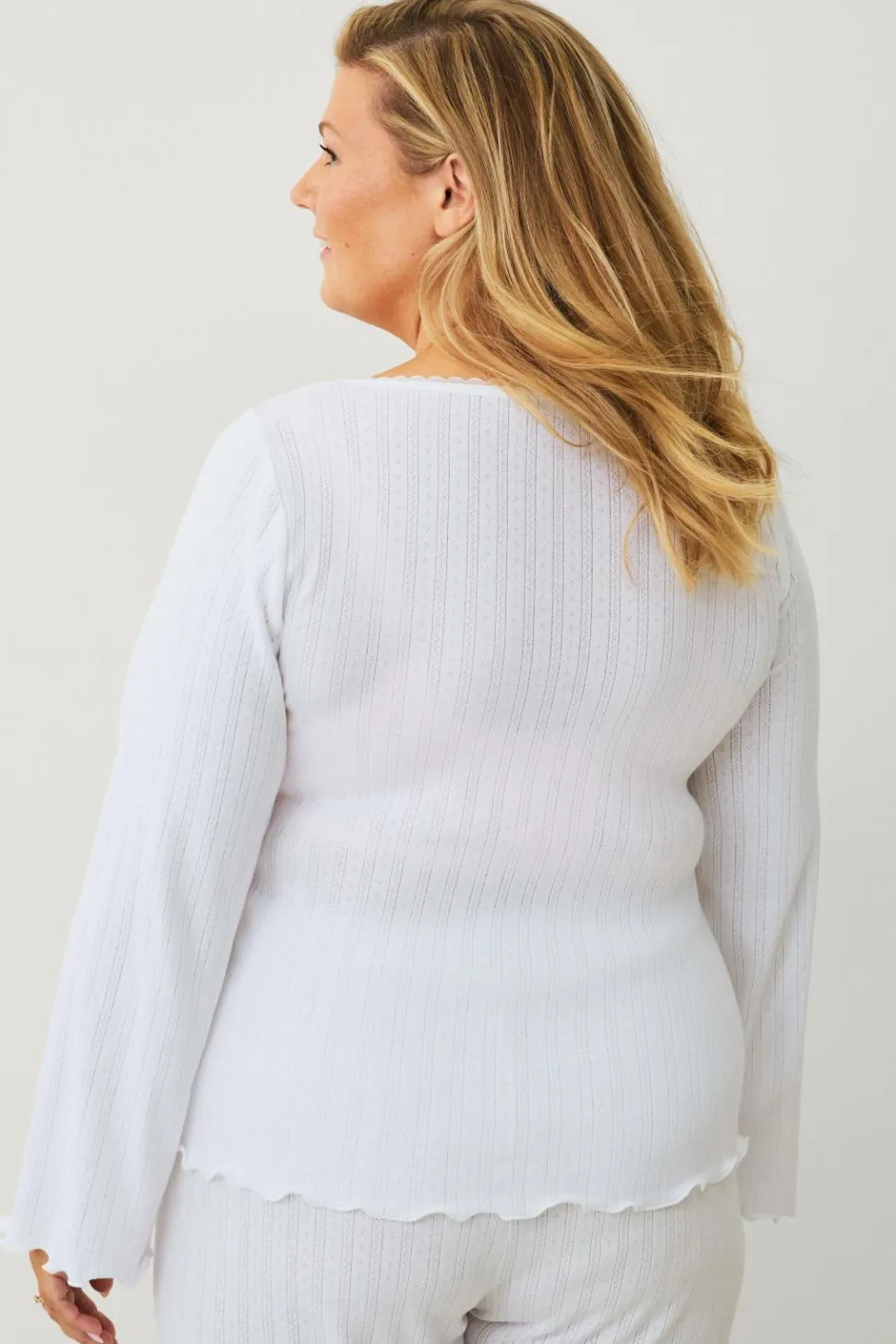 • Rund halsudskæring med dekorativ blondekant og en lille sløjfe