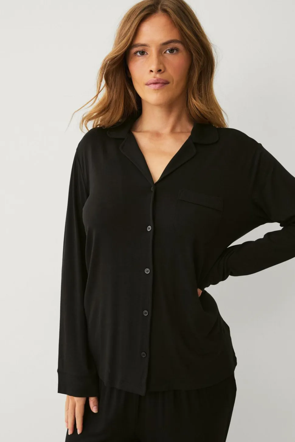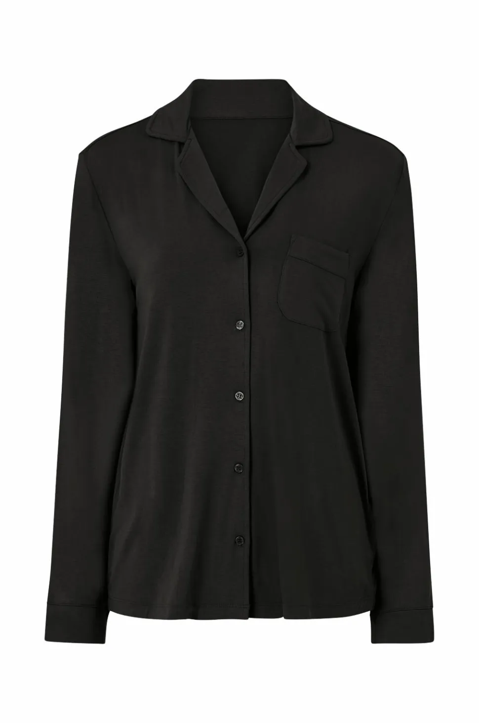 • Skjorte med krave, revers, knapstolpe foran og påsyet lomme på brystet