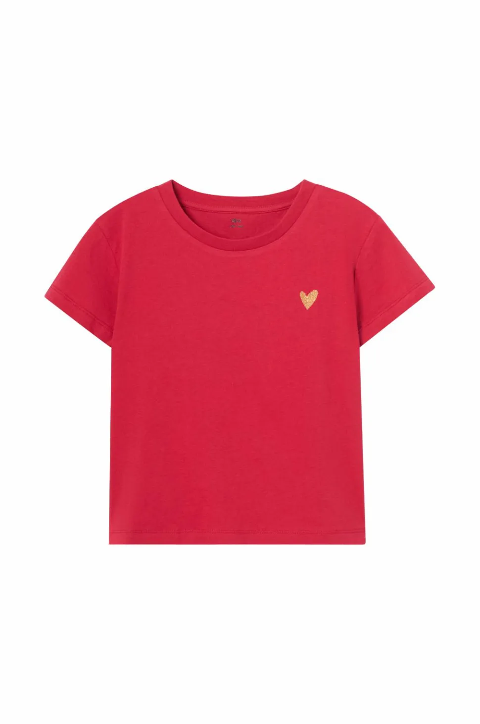 • T-shirt med rund, ribbet halsudskæring og glitrende hjerte på brystet