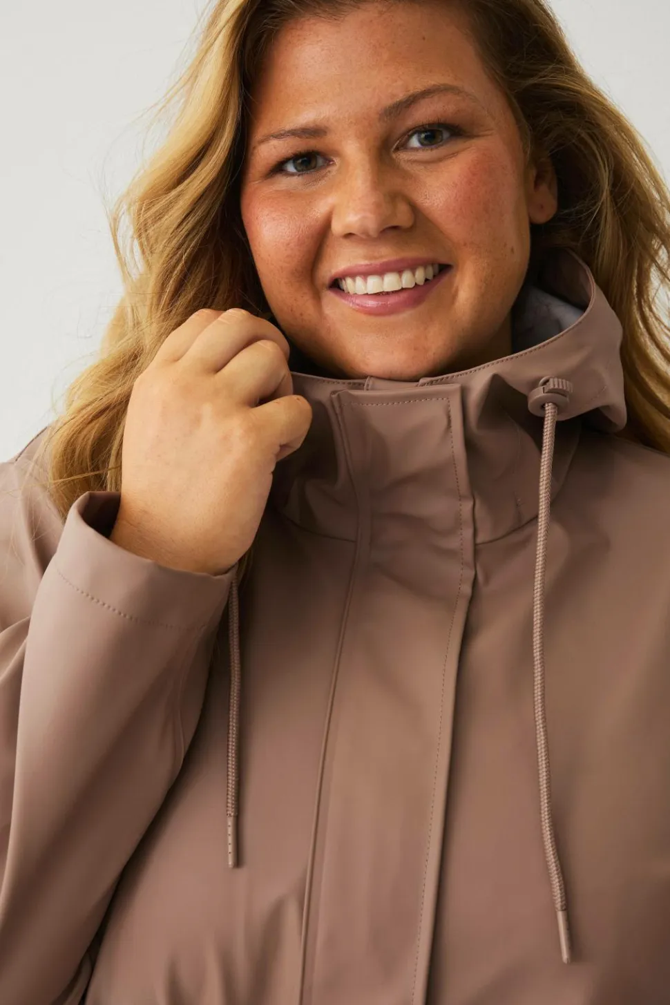 • Fast, justérbar hætte med træksnørre og stopper