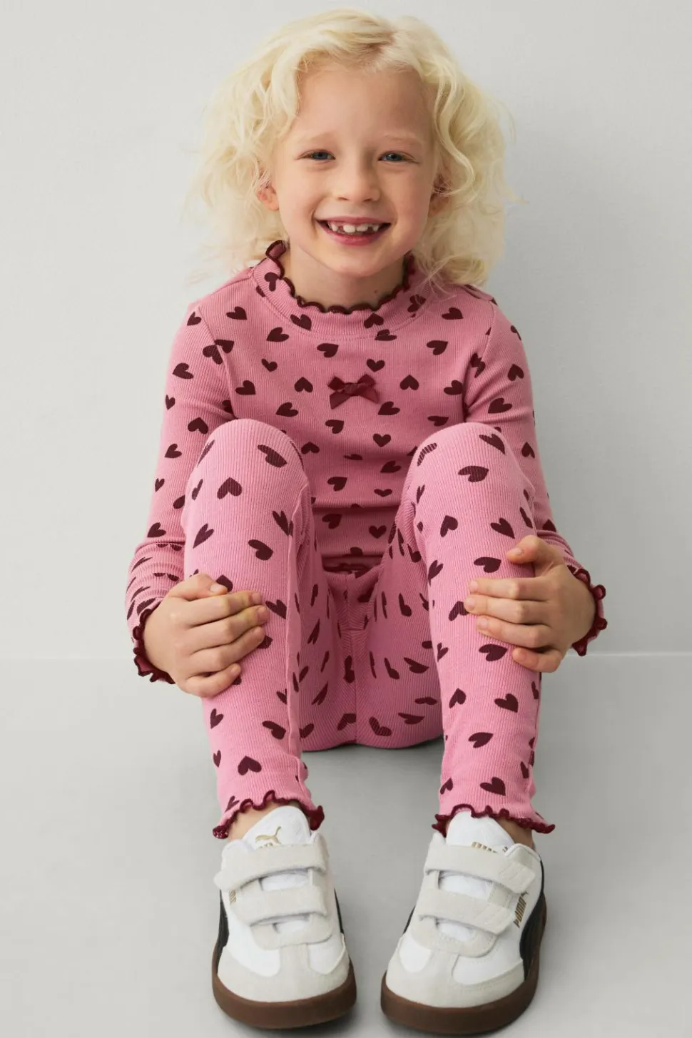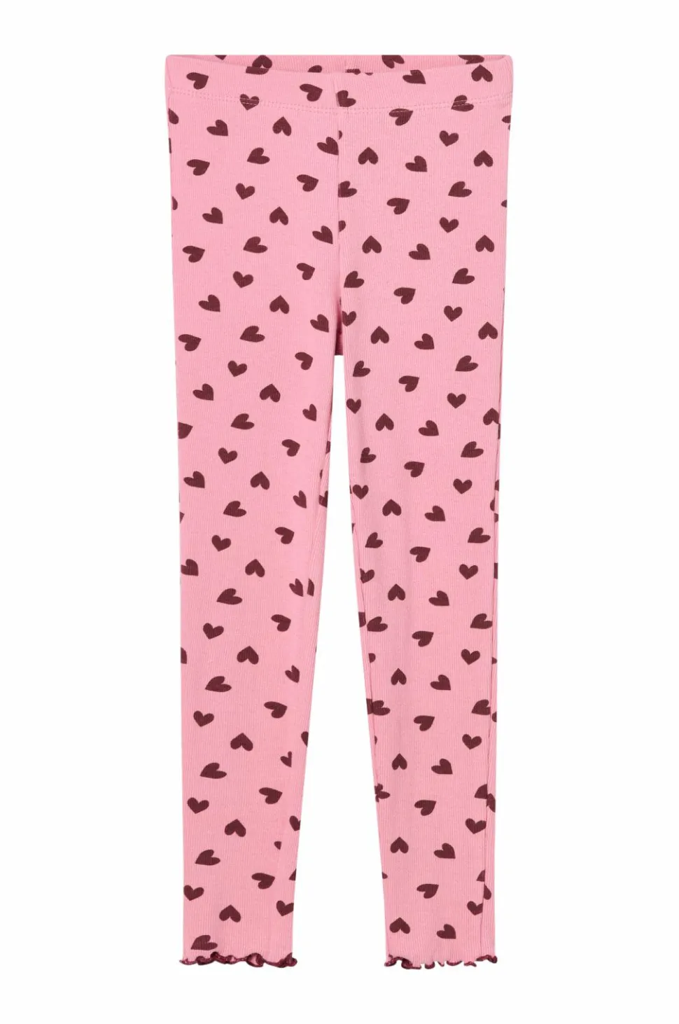 • Ribbede leggings i bomuld med printede hjerter