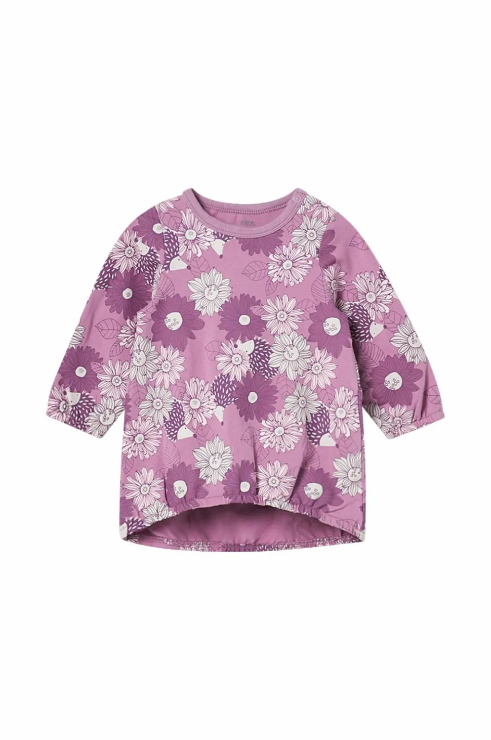 • Langærmet kjole med elastisk bånd nederst og ved ærmeafslutningerne