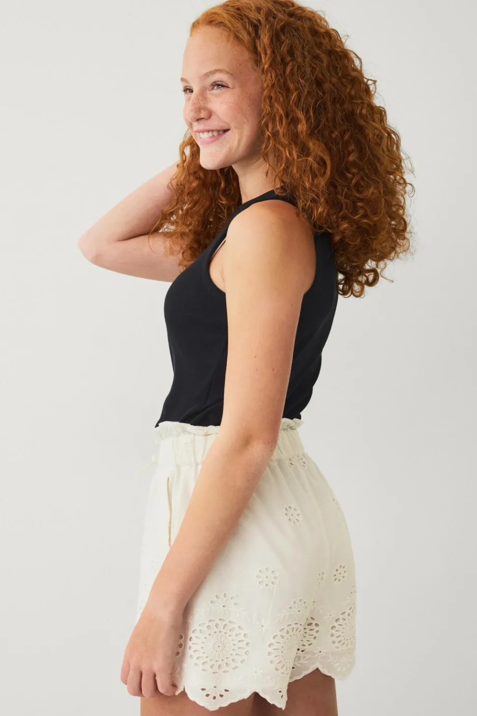 • Foret shorts i bomuld med hulbroderier overalt