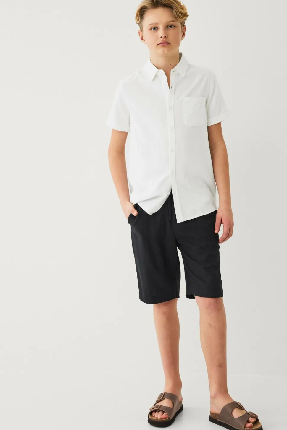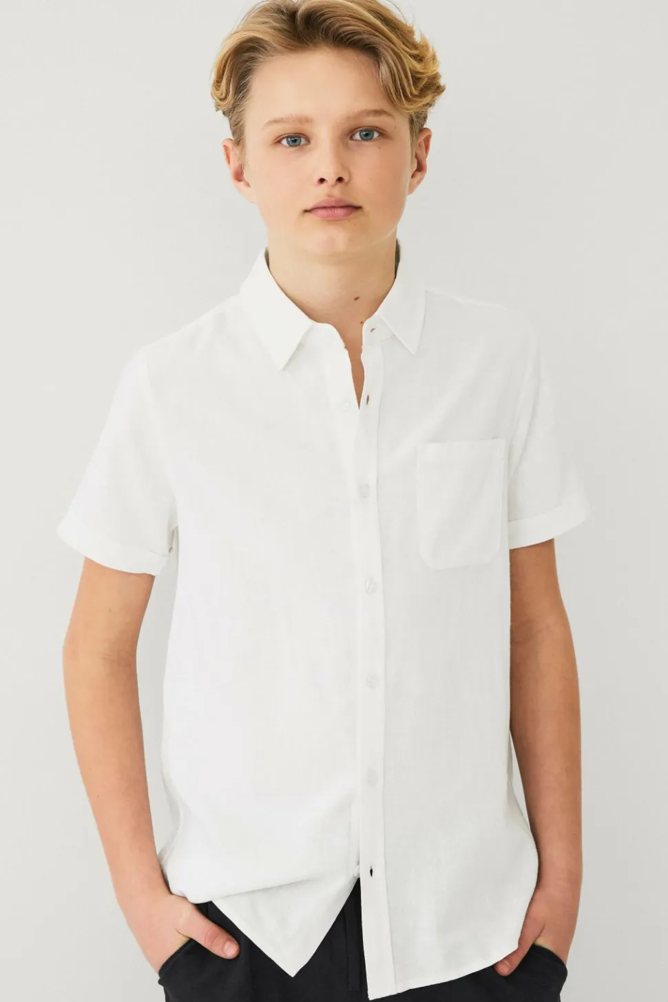 • Kortærmet skjorte i hørblanding