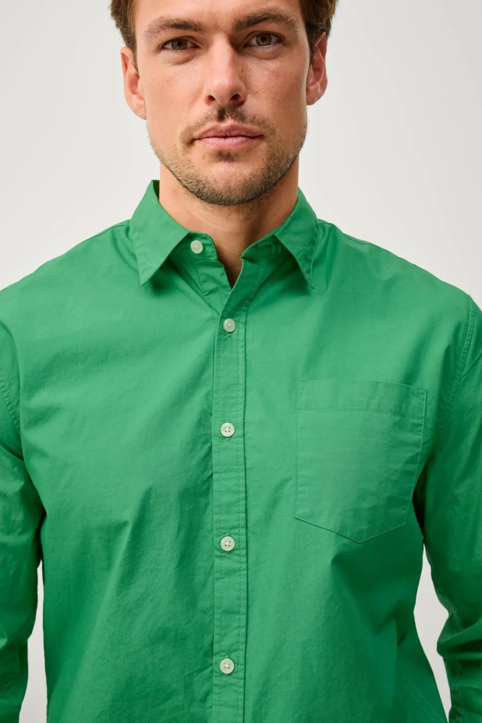 • Ensfarvet skjorte i bomuld