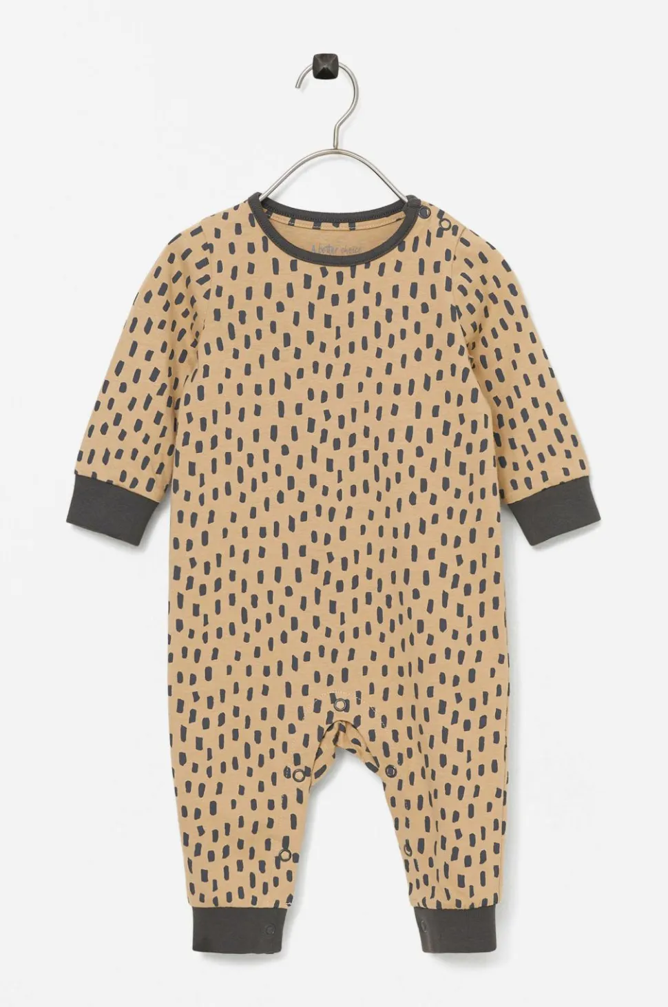 Sparkedragt Shae Baby Jumpsuit i jersey af økologisk bomuld med printet mønster. Ribkant i ærmekant og benkant. Trykknapper langs benenes inderside og på den ene skulder.
