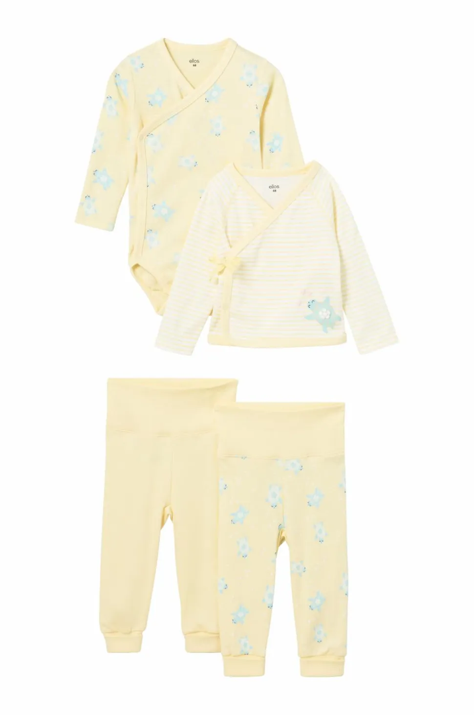 Startpakke eller gavesæt i 4 dele til babyens første tid. Blød økologisk bomuldsjersey.