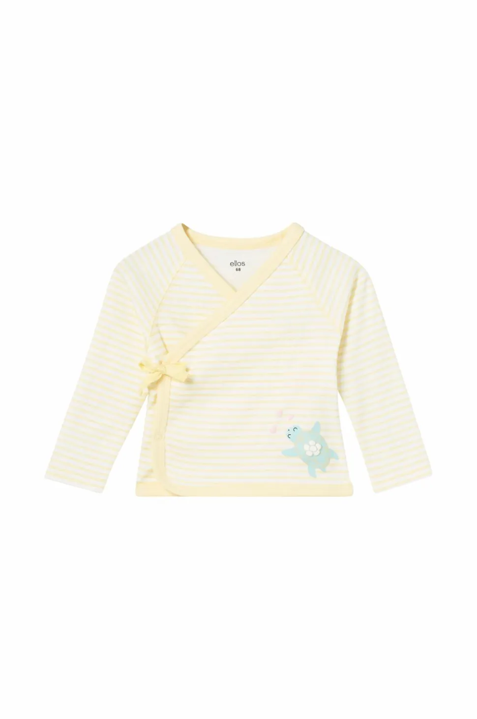 • Langærmet top med slå-om design med trykknapper og bindebånd