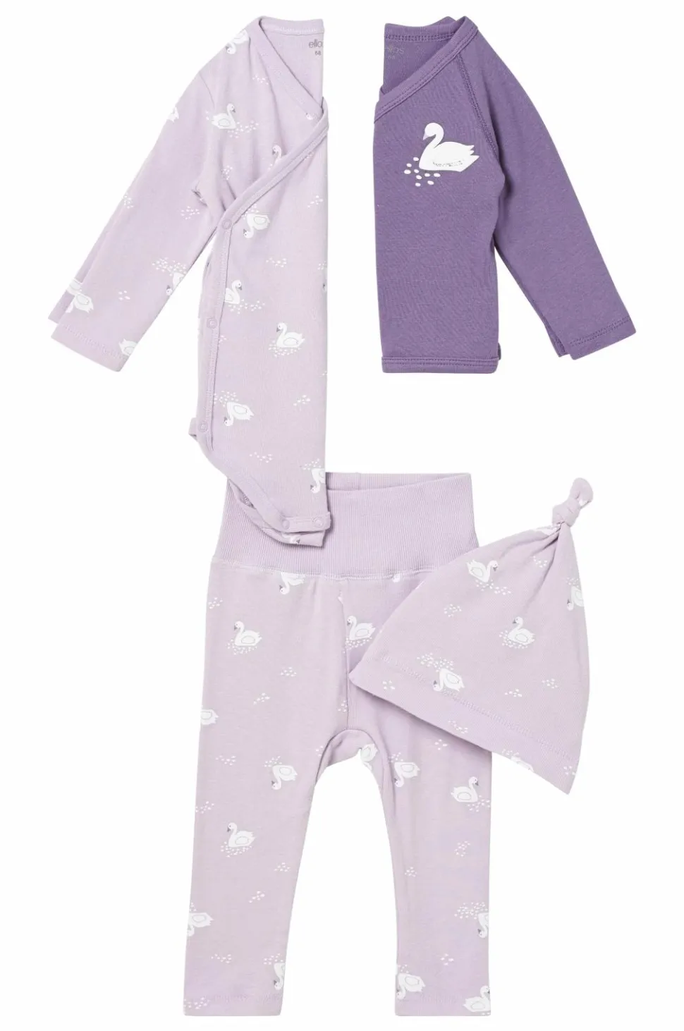 Tøjpakke til barnets første tid. Alle dele er i blød jersey af økologisk bomuld.