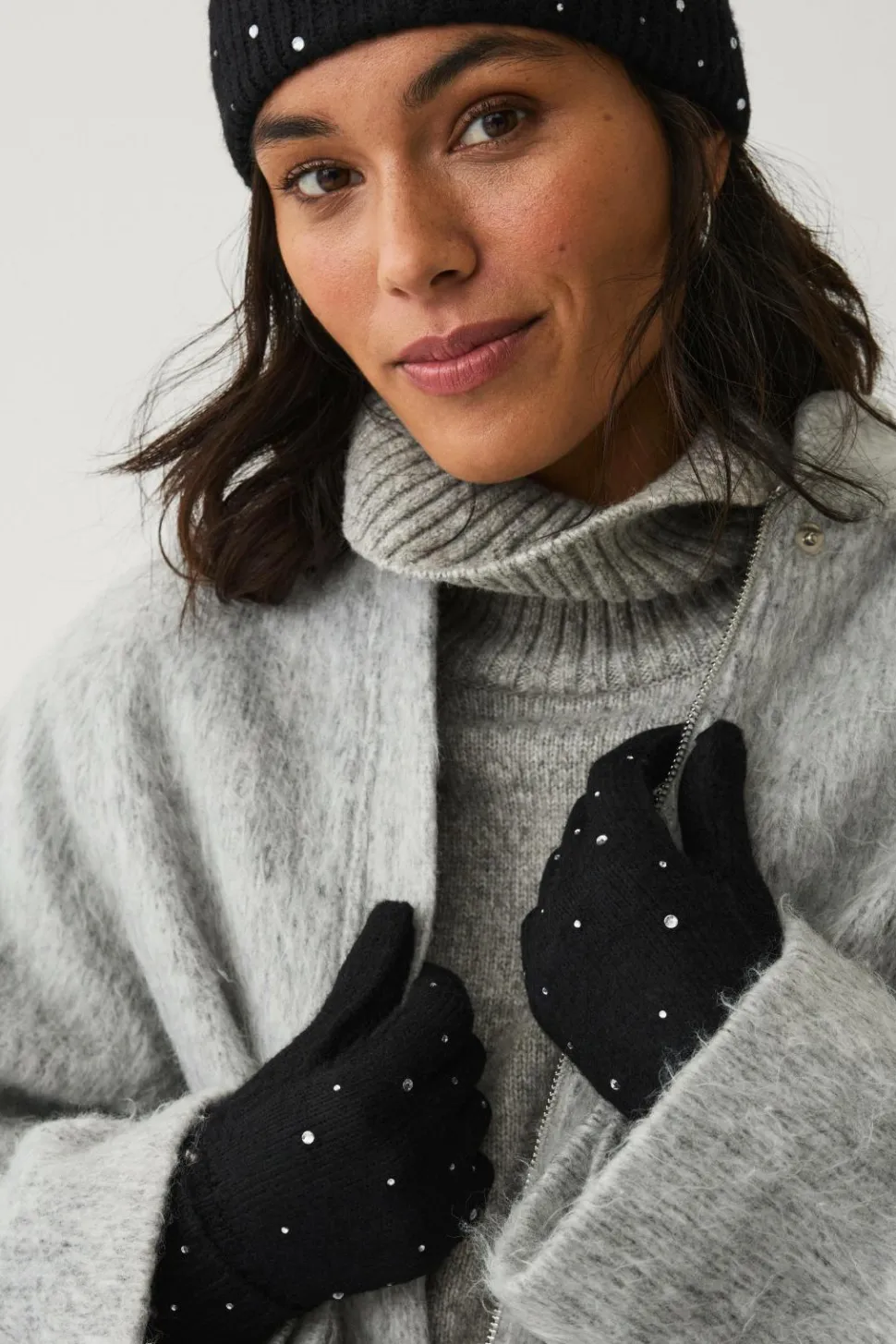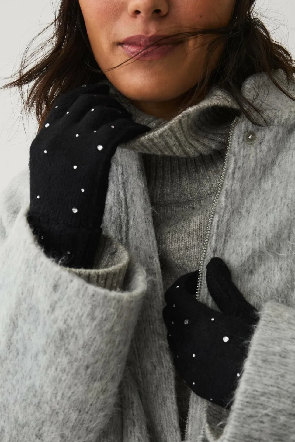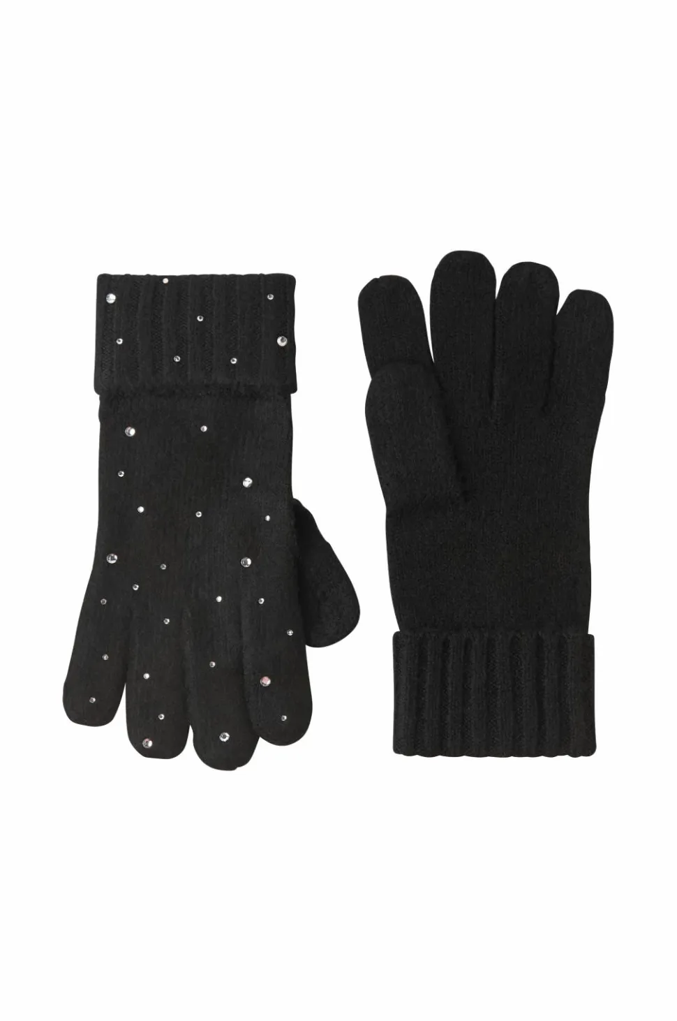 • Fintstrikkede handsker med ribstrikket, nedadvendt skaft