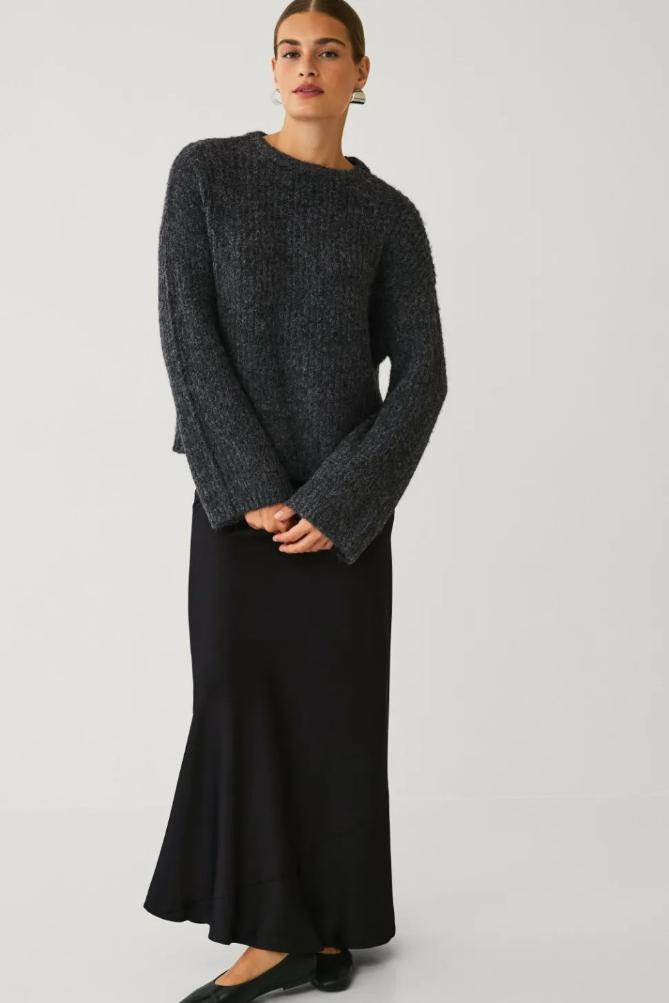 • Lange ærmer med noget bredere ærmeafslutninger