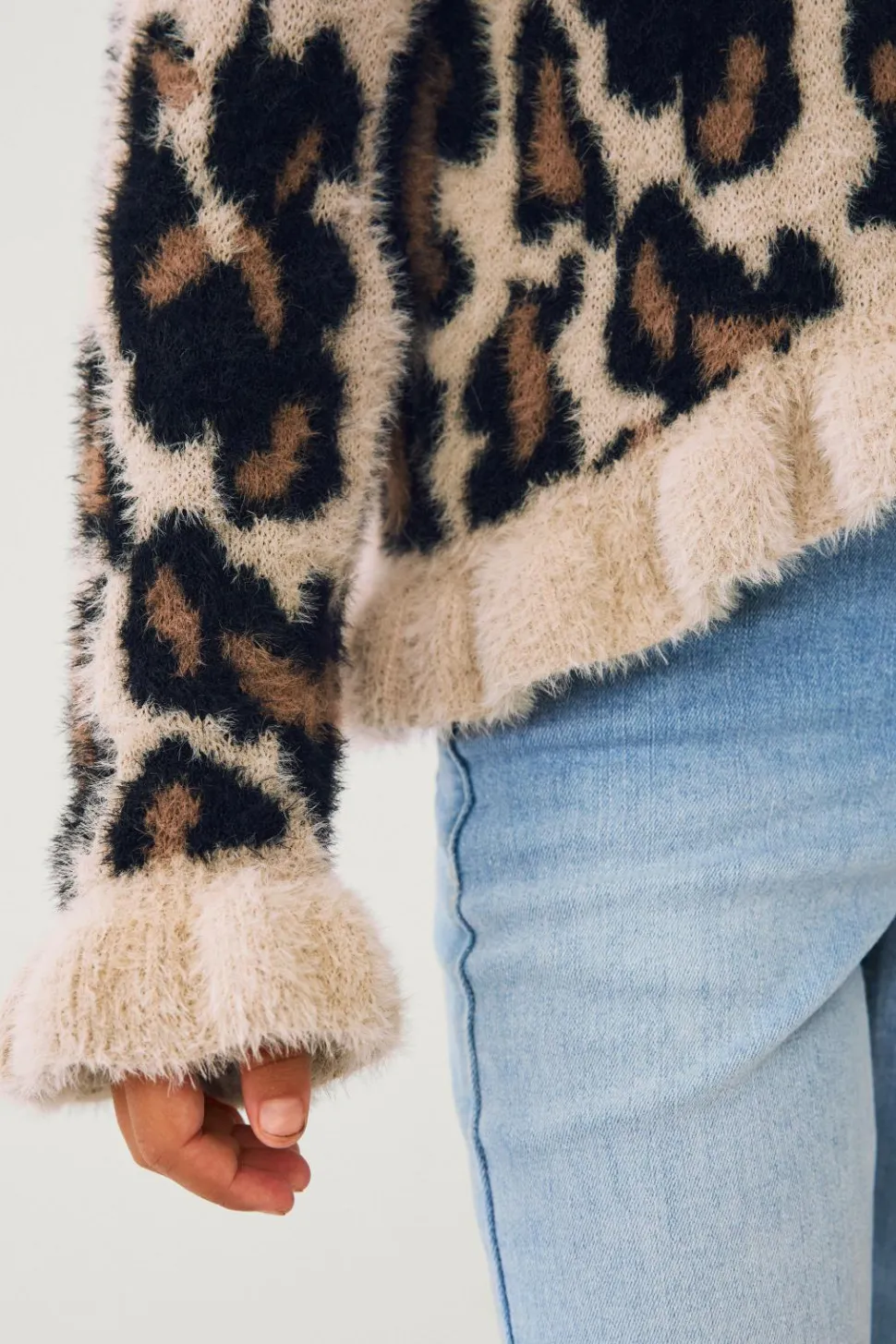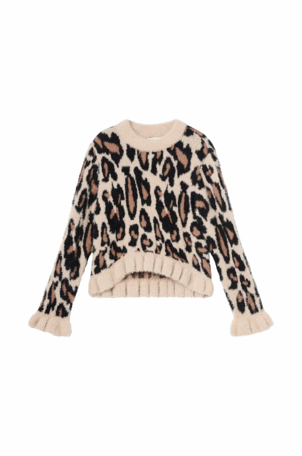 • Fintstrikket, blød trøje med rund, ribbet halsudskæring