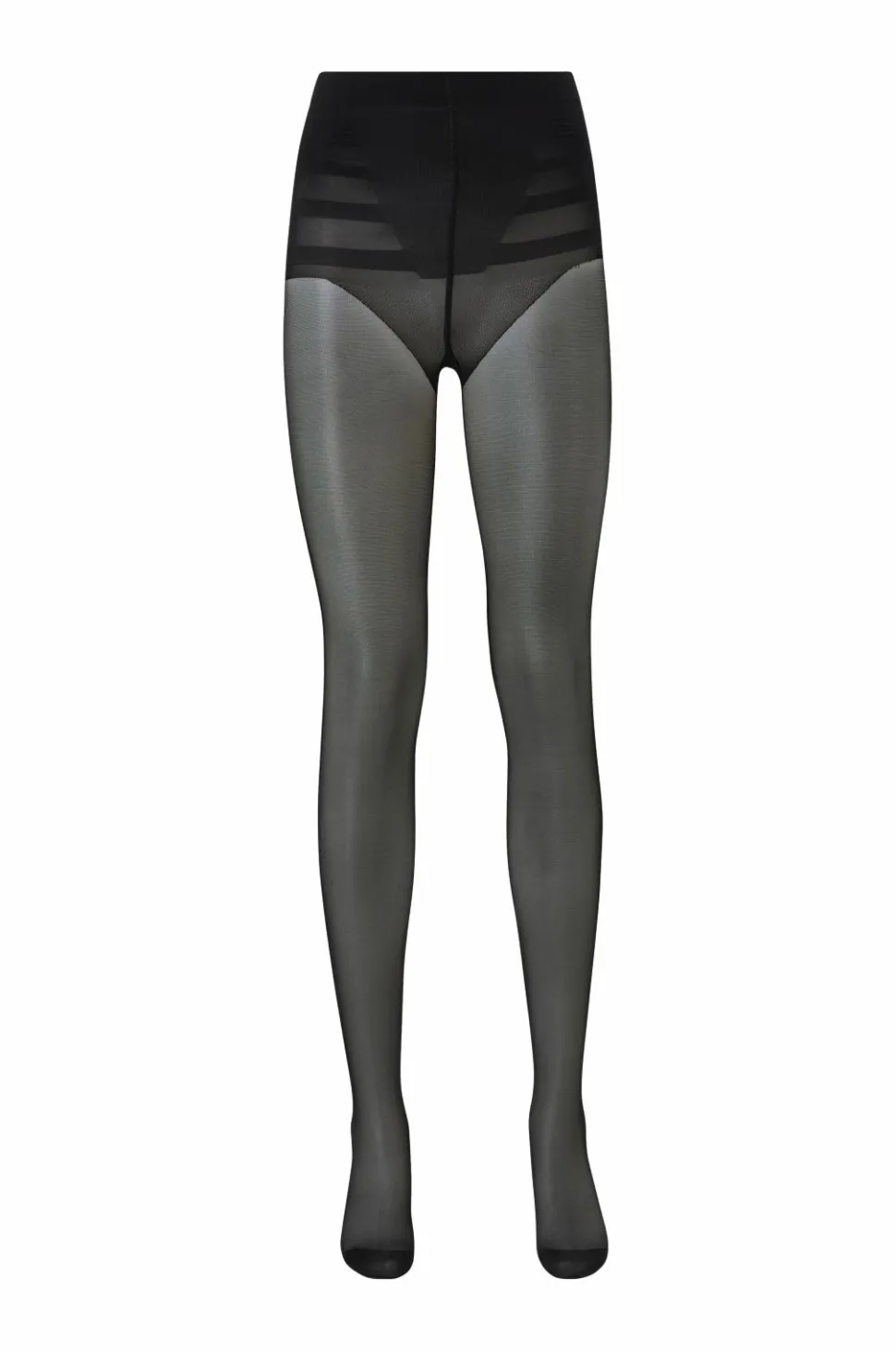 • Strømpebukser, der former sig og holder på hele for- og bagsiden af trusserne