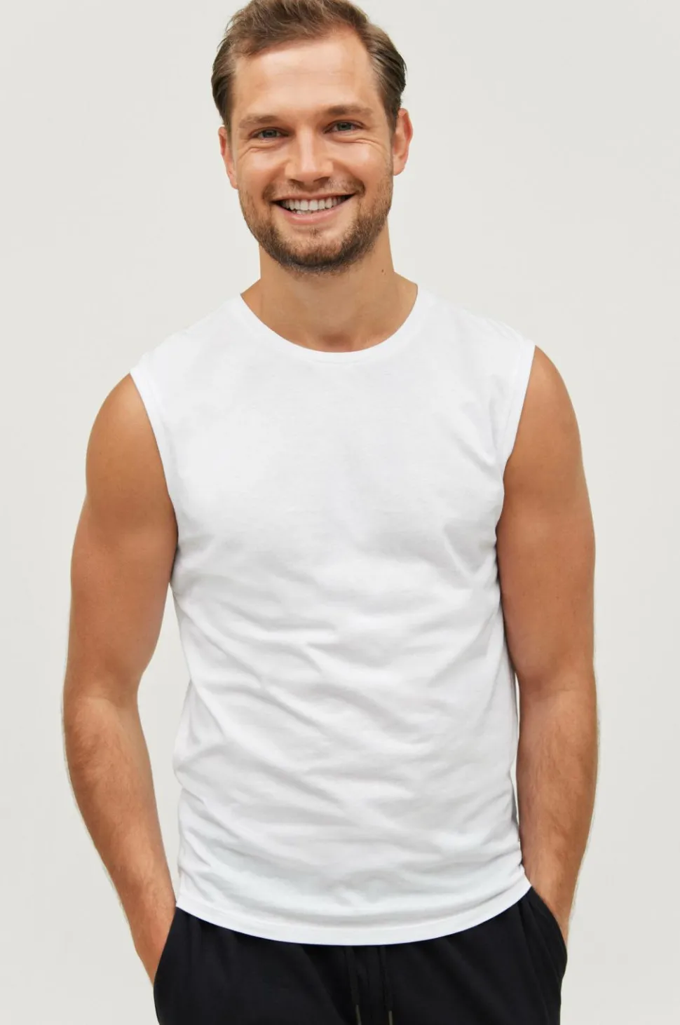 Top Kent i jersey med ribkant langs ærmegab og halsudskæring.