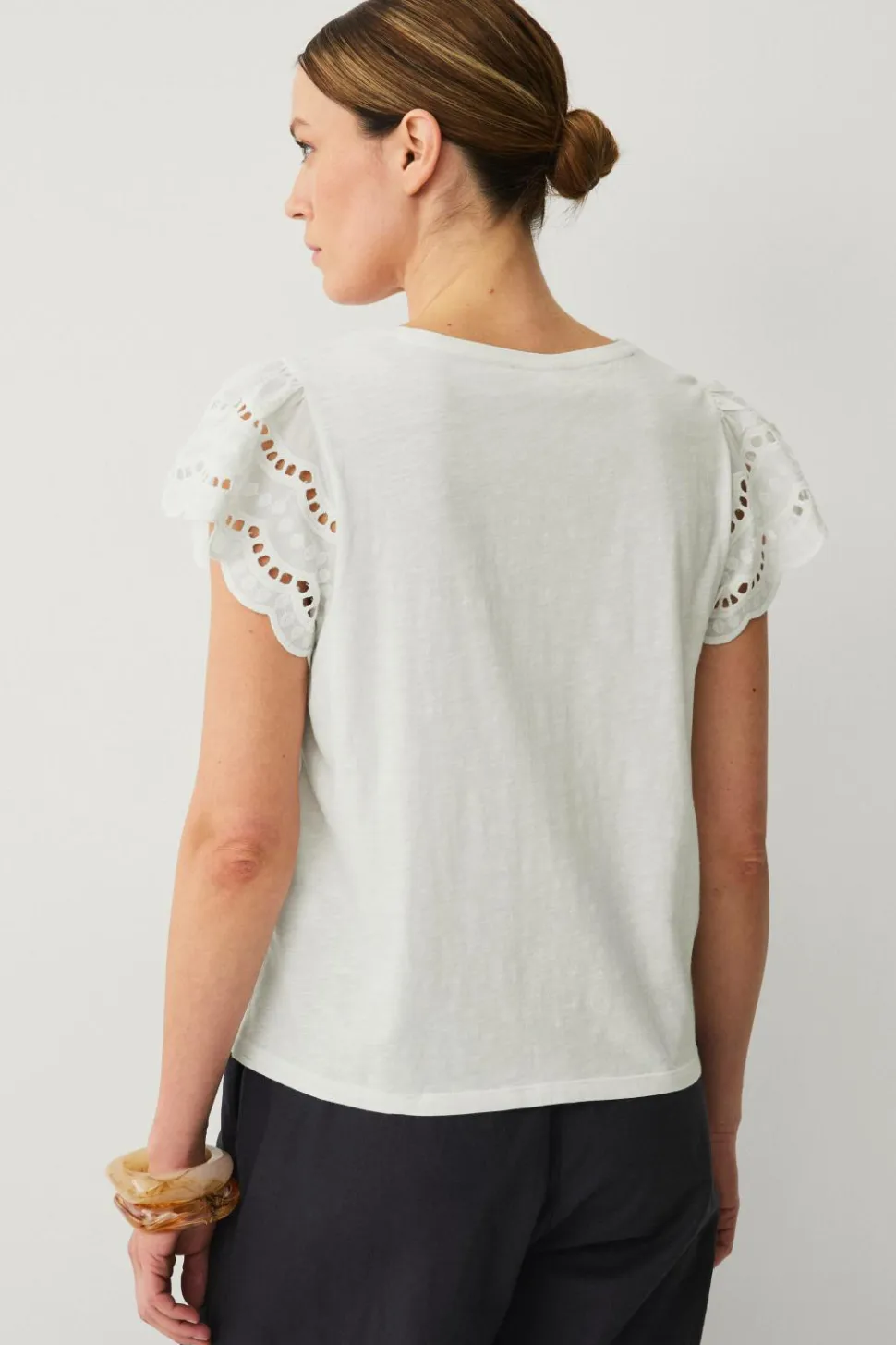 • Kort, bredt ballonærme med hulbroderier