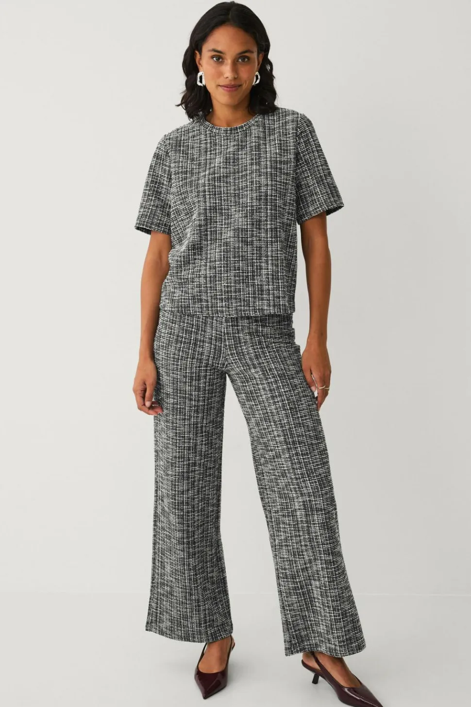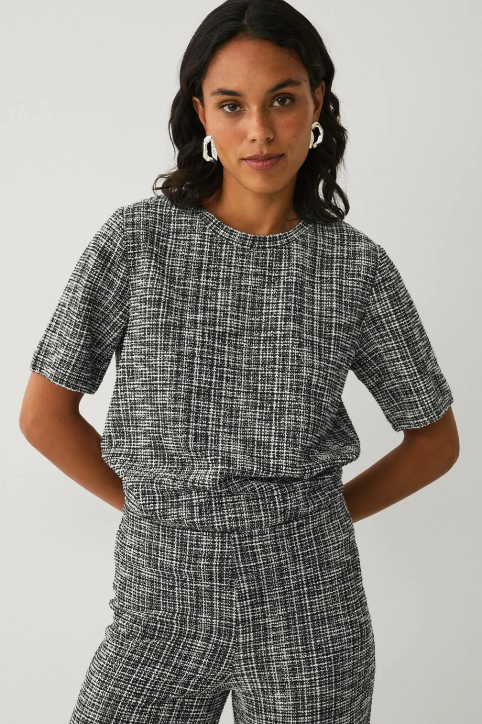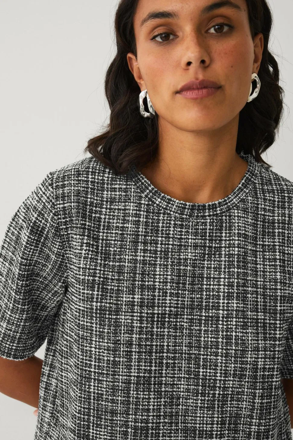 • Elastisk, kortærmet top med struktur i bouclé