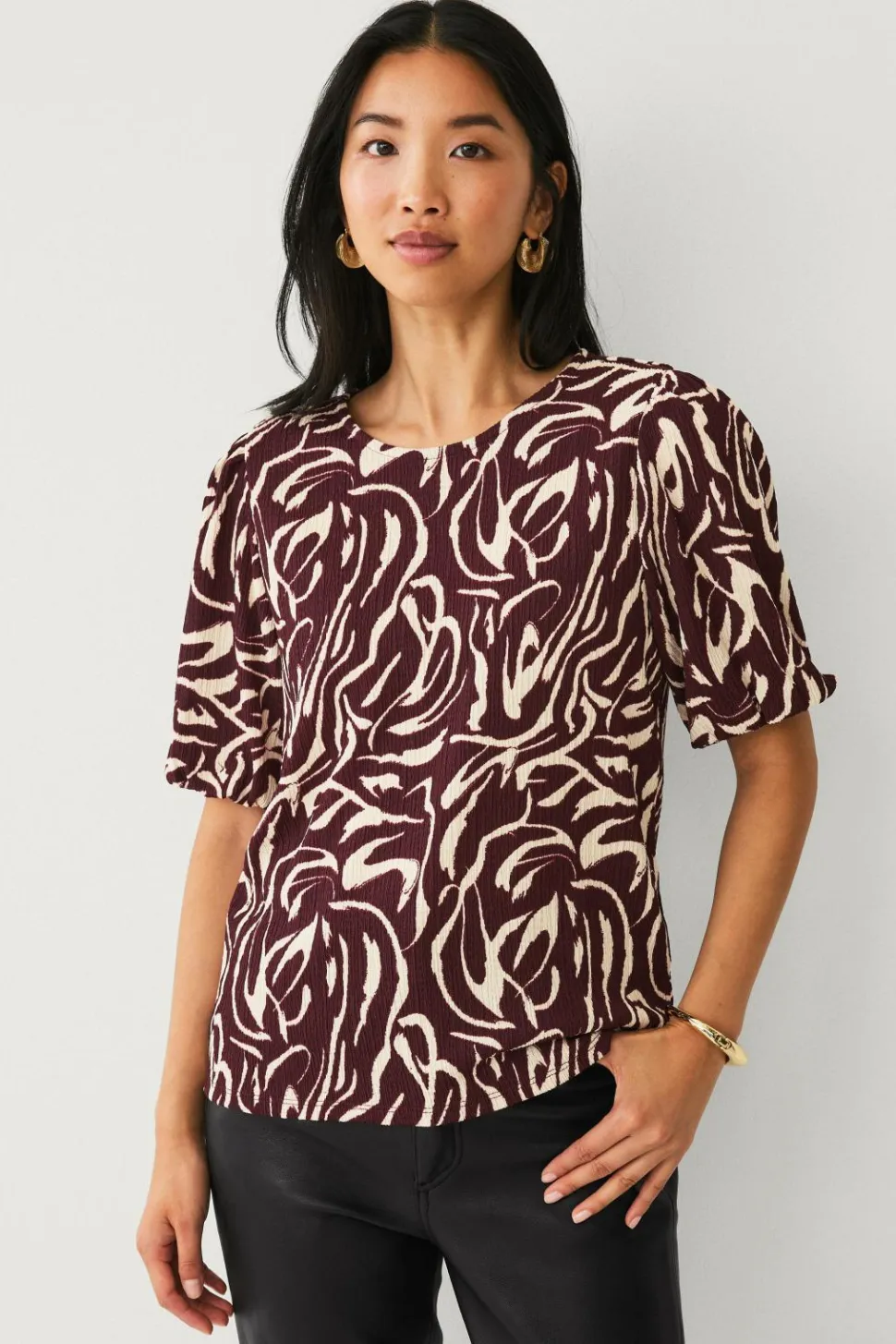 • Top i tynd, blød polyesterblanding med struktur og mønster