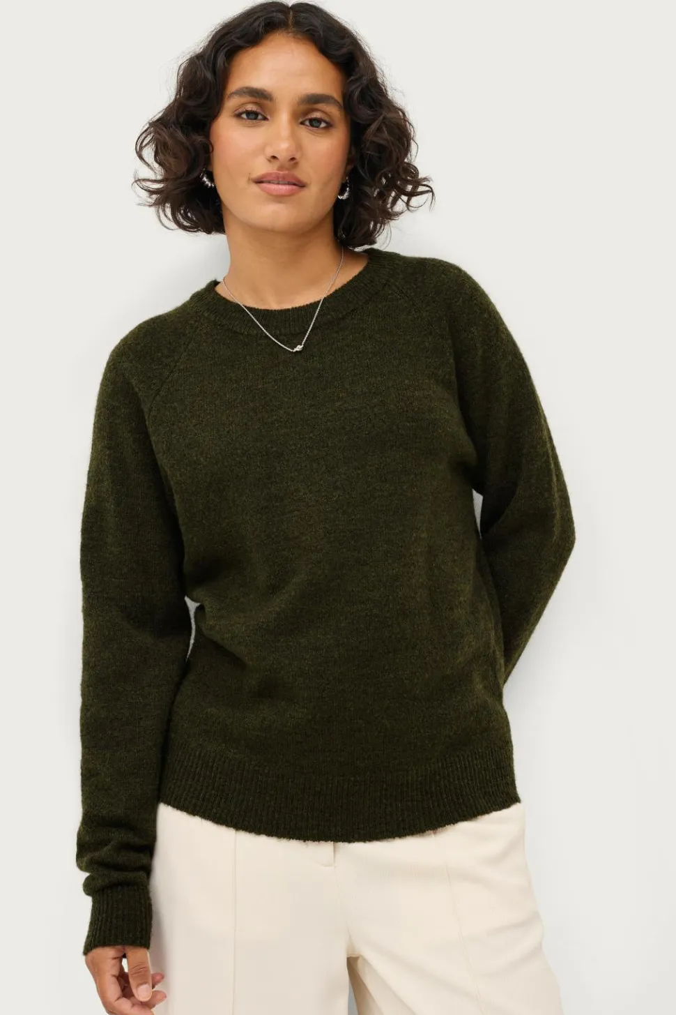 • Halsudskæring med ribstrikket kant