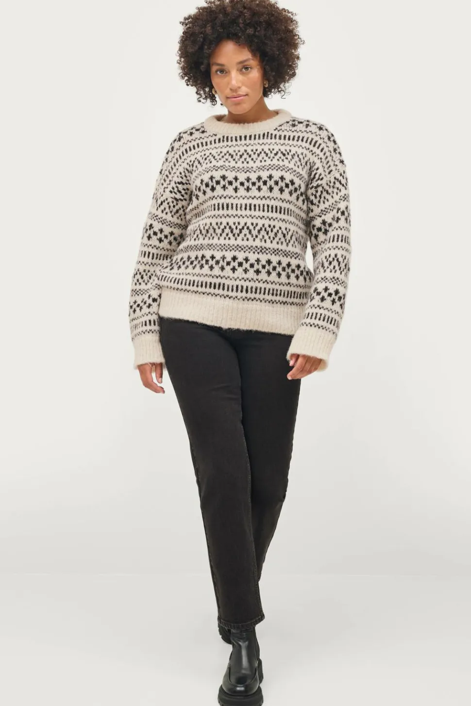 • Ribstrik ved manchetterne og ved nederste kant