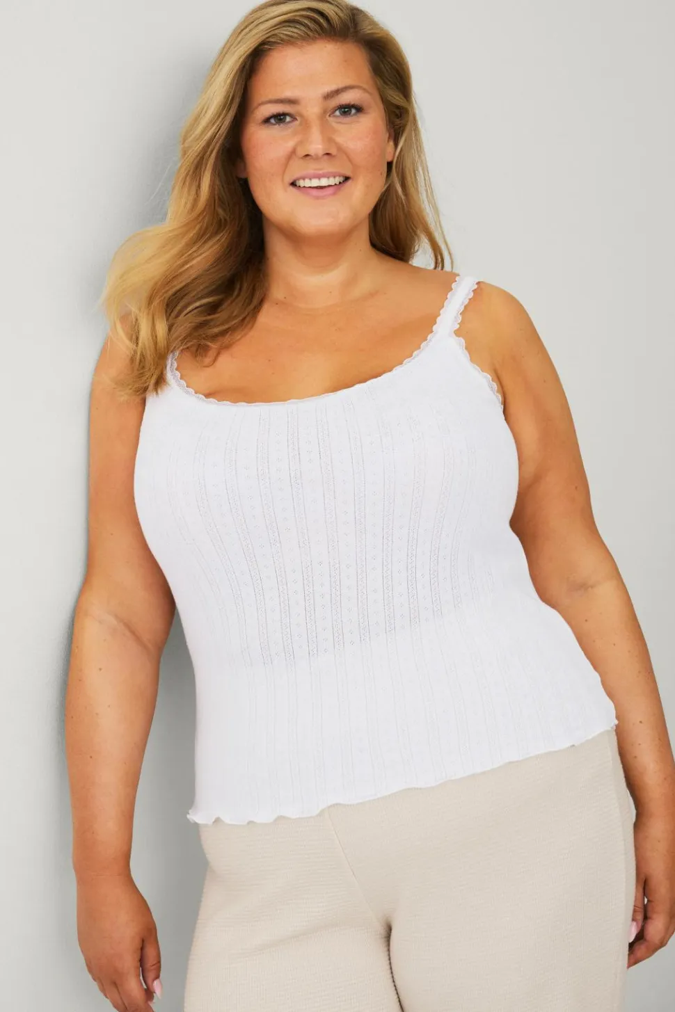 • Dekorativ blondekant på toppen