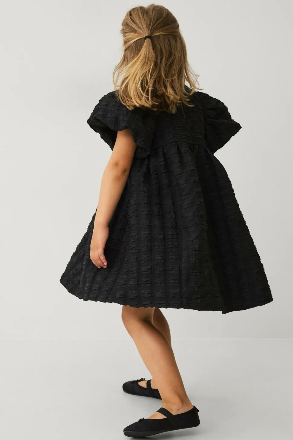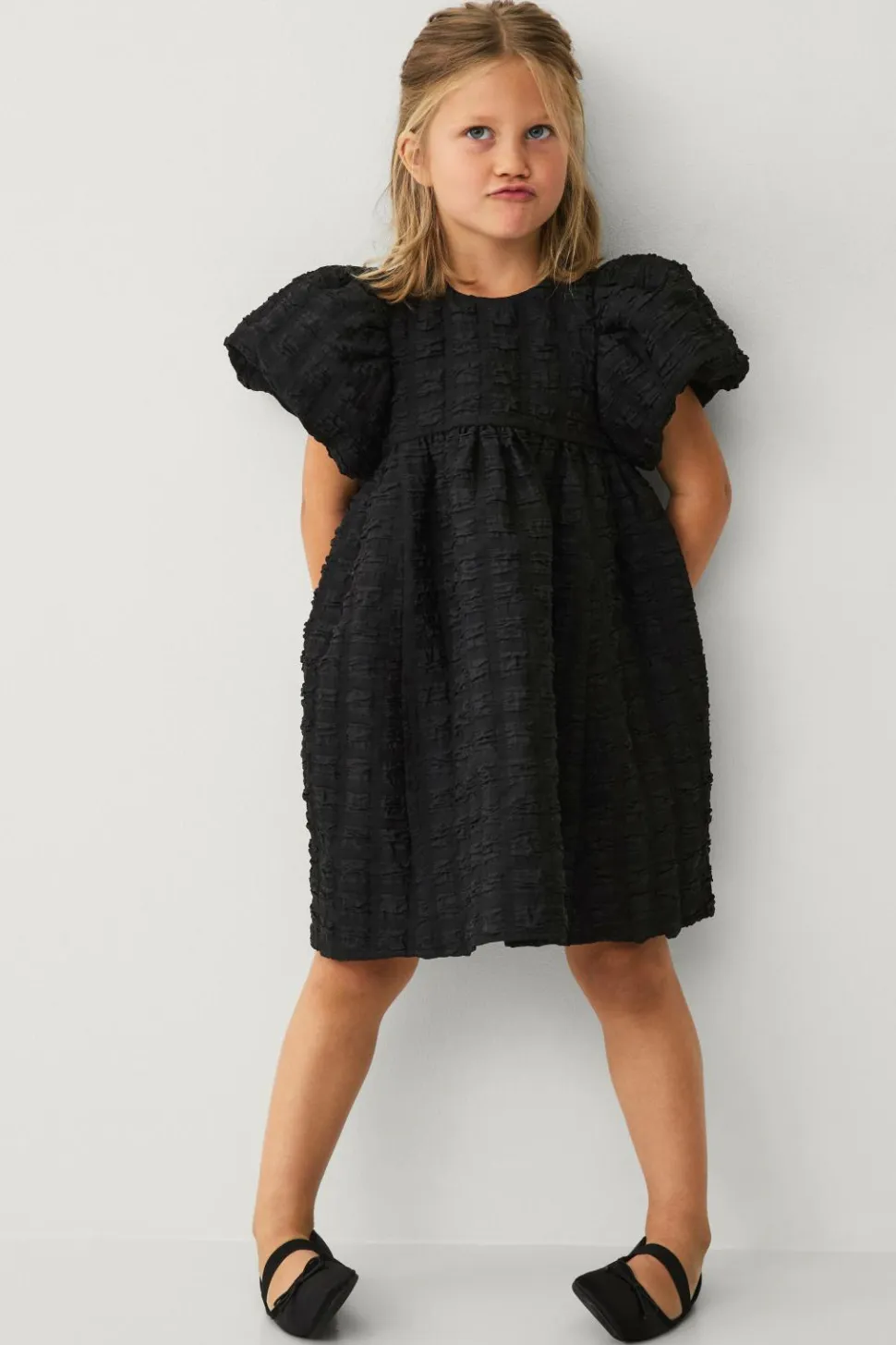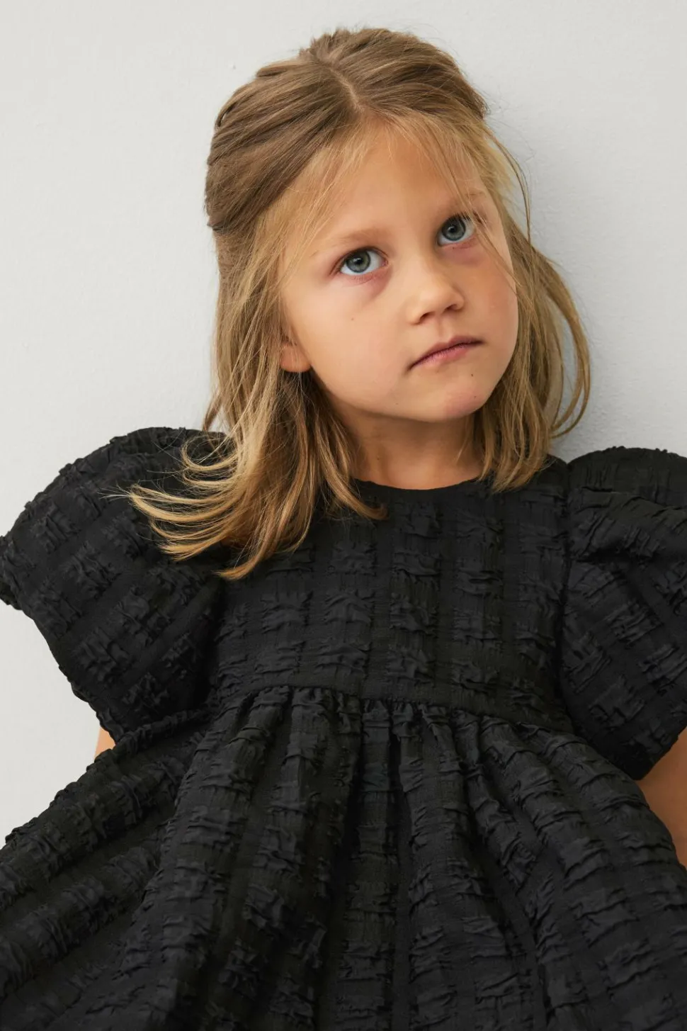 • Kjole i elastisk polyestermix med vævet, ternet strukturmønster