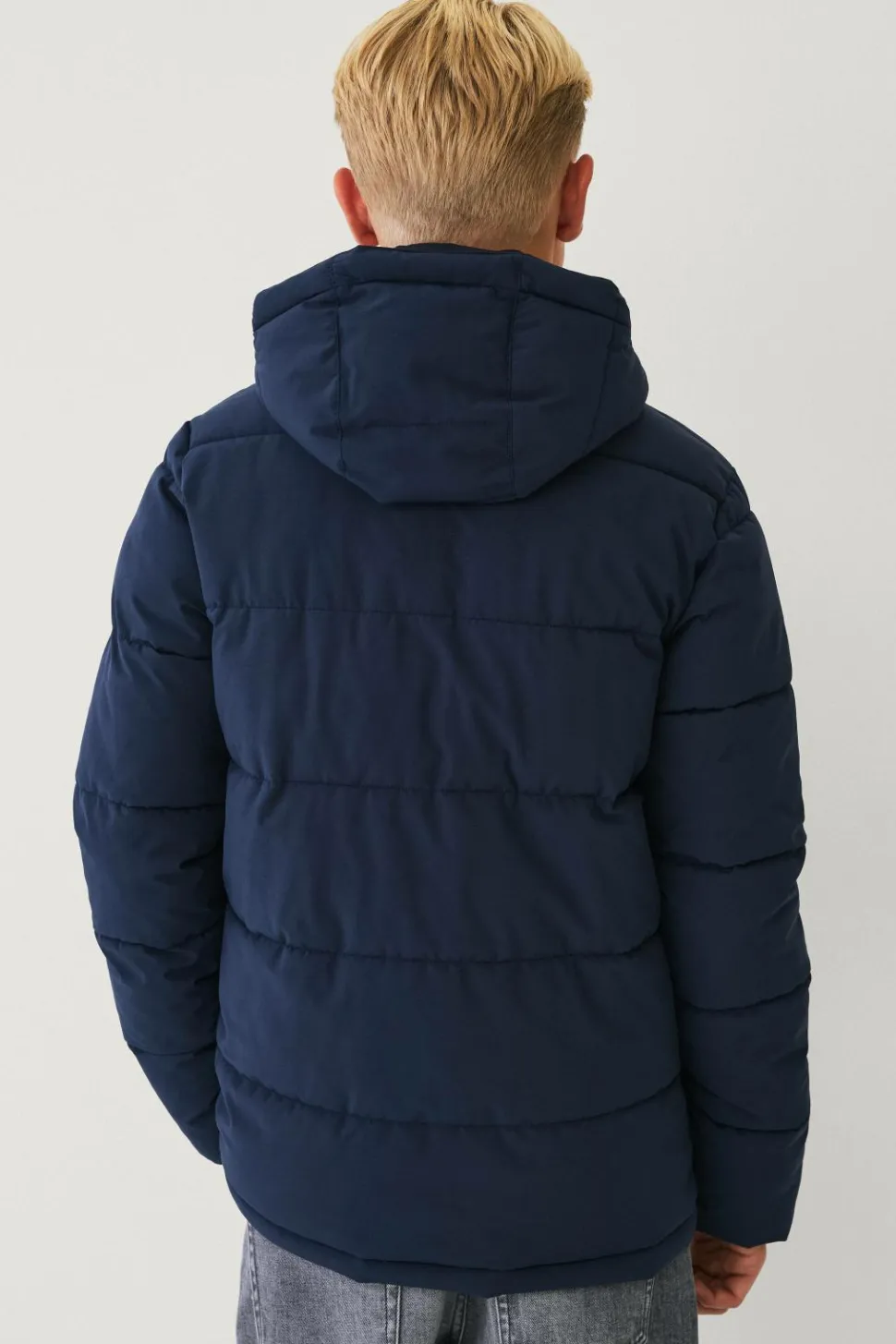 • Quiltet, varm pufferjakke med aftagelig hætte