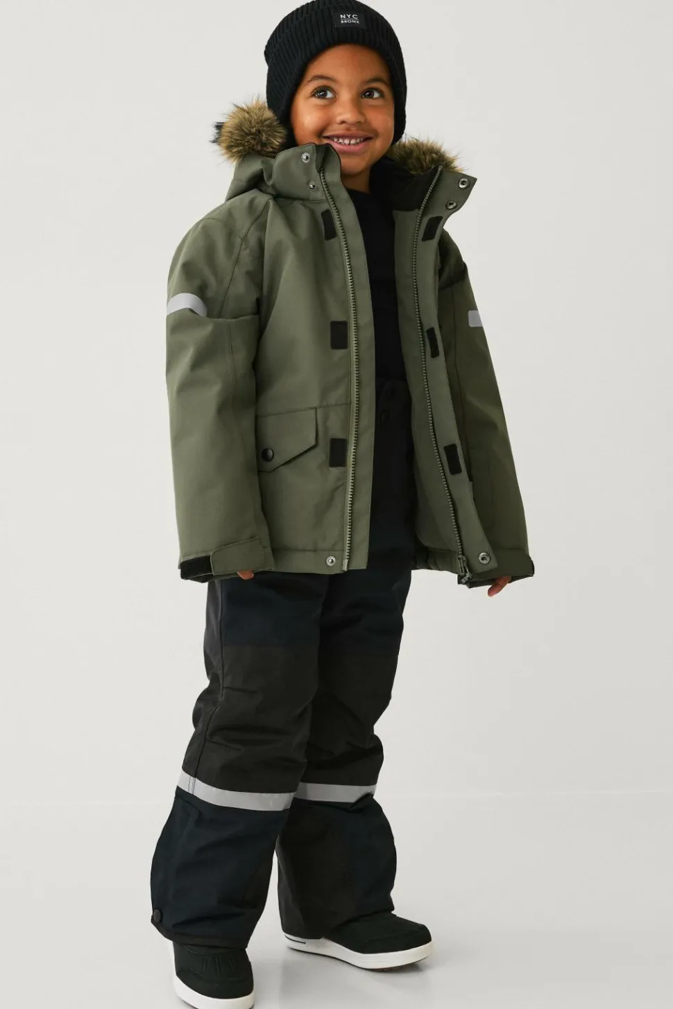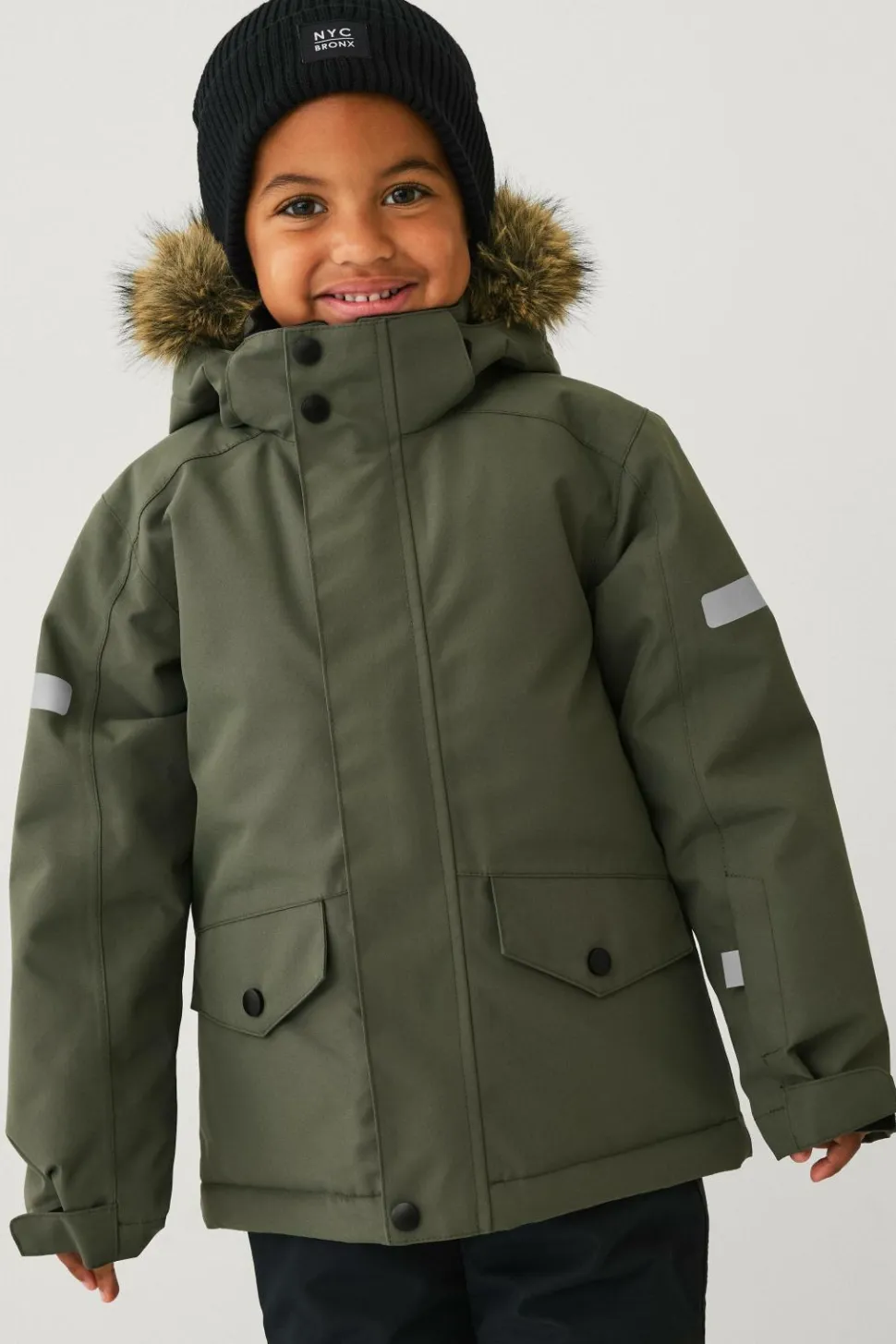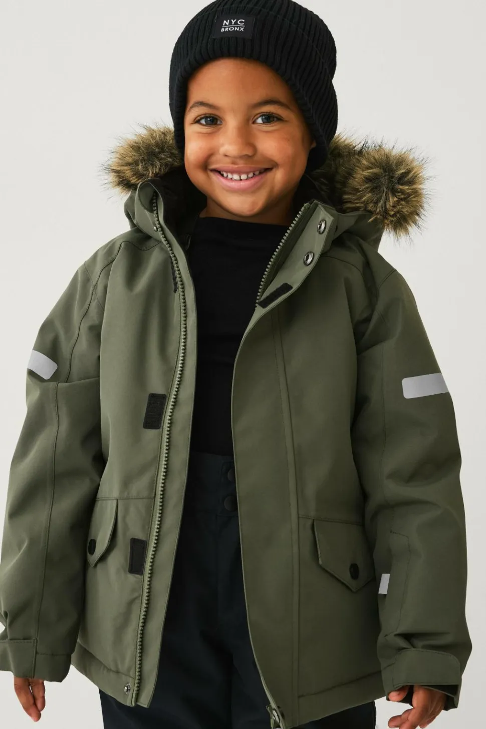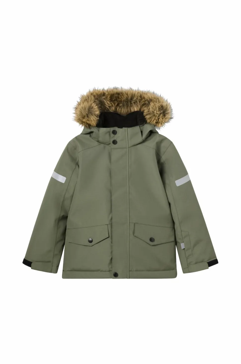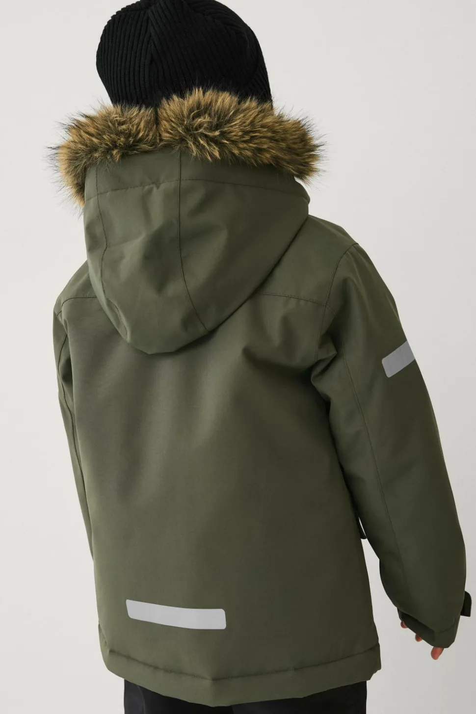 • Aftagelig, justérbar hætte med aftagelig kunstpelskant