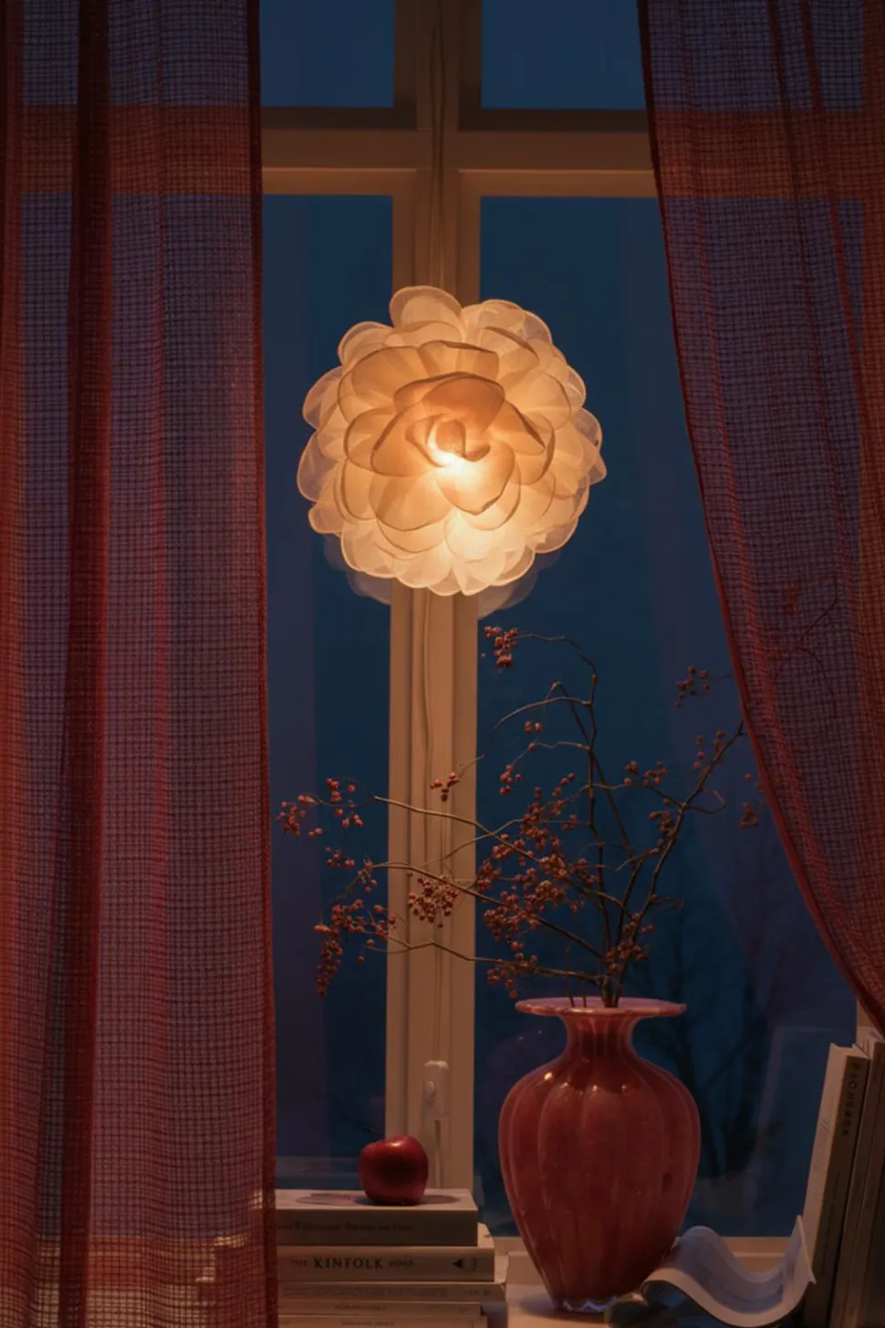 • Blomsterformet adventsstjerne i tekstil og akryl