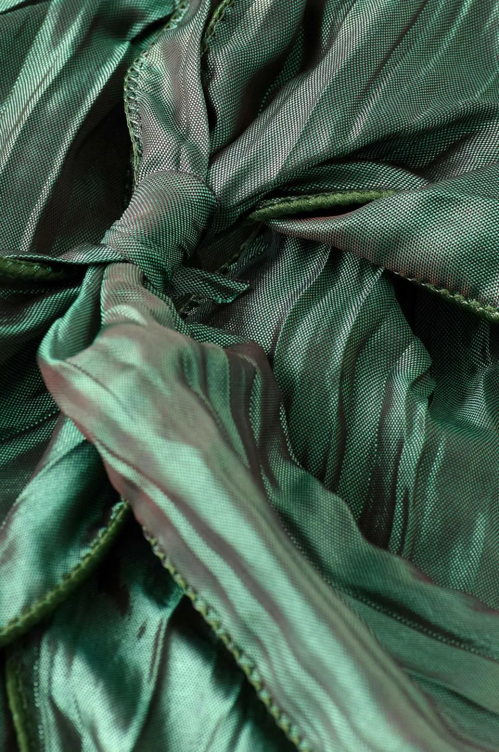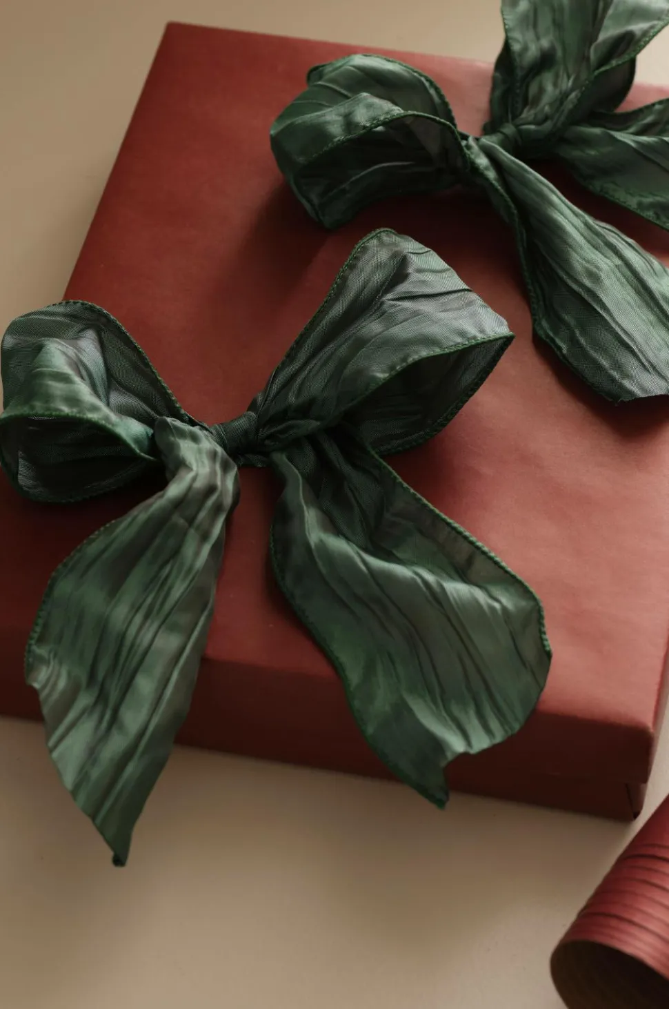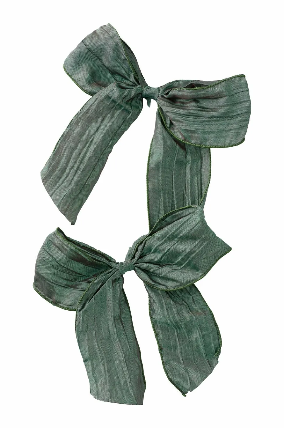 • To bånd i rynket stof med en metaltråd ved afslutningerne