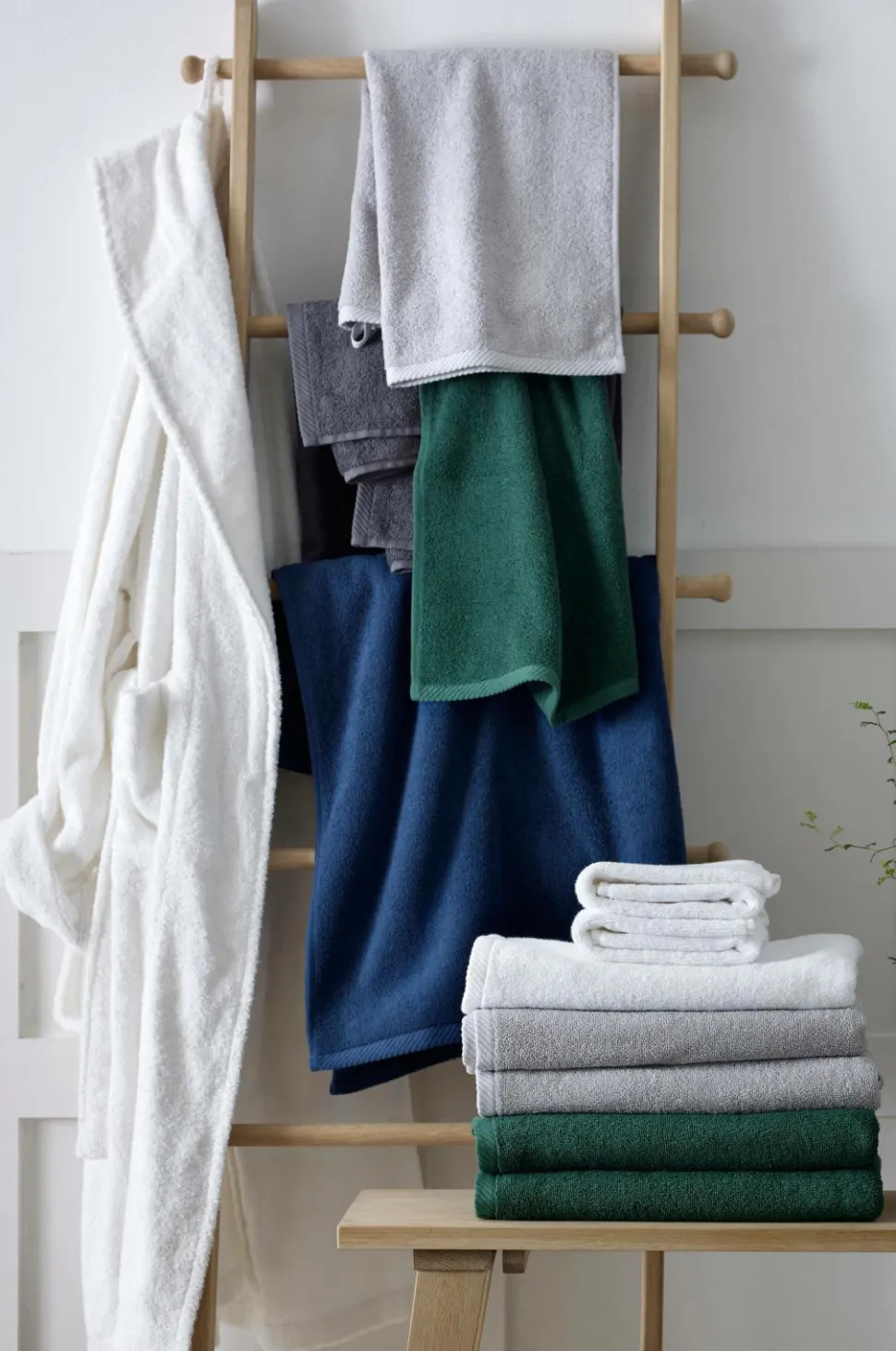 Badekåbe af 100% bomuldsfrotté med krave, to lommer og bindebælte. Længde 120 cm i str. 38/40.