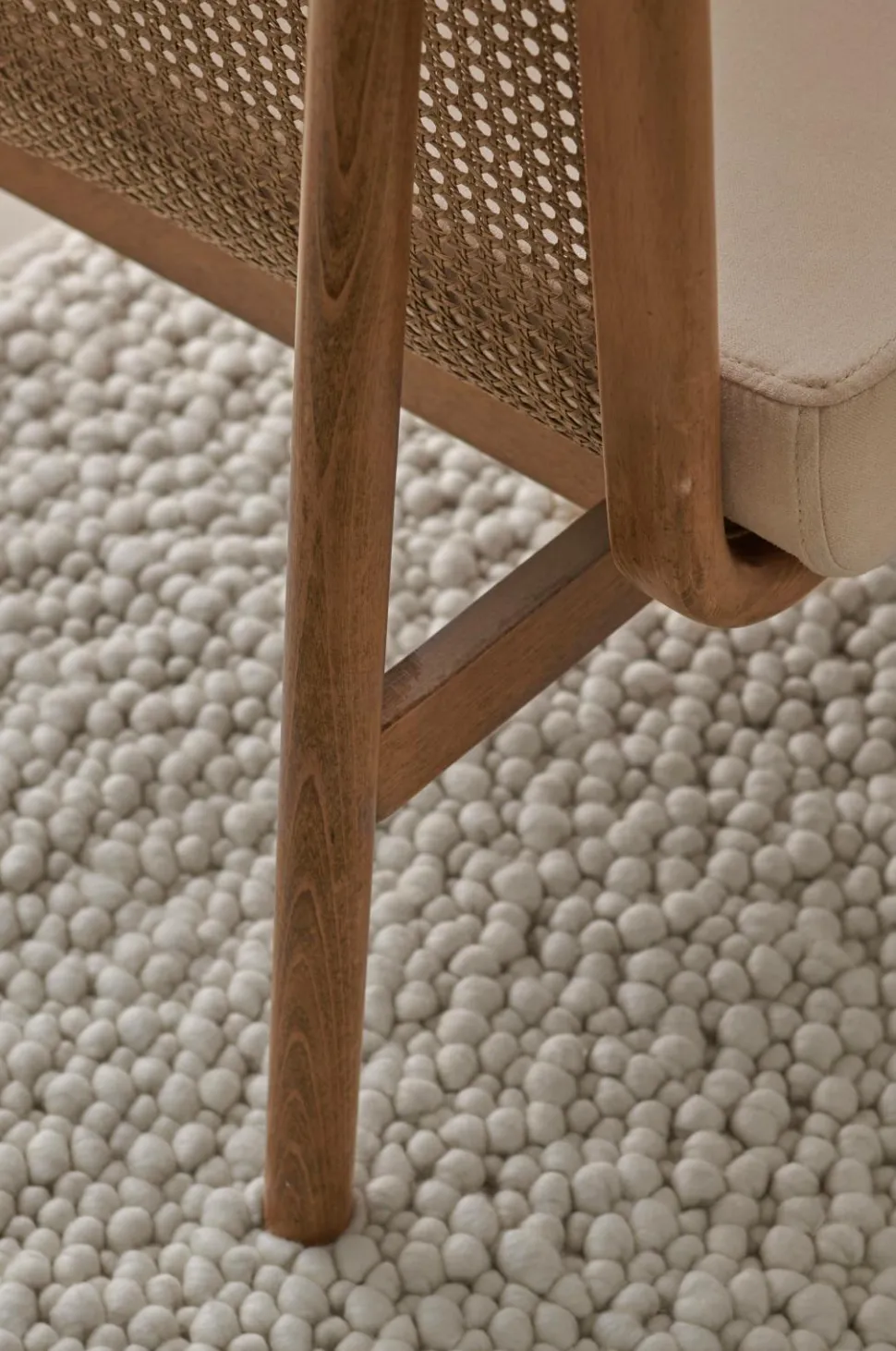 Bænk i lakeret bøgetræ med sæde af flettet jutereb. Farven er vandbaseret.