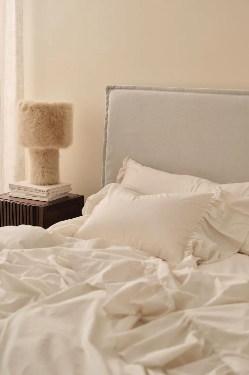 • Et betræk, som du trækker over dit hovedgærde. Betrækket har en løs pasform, afhængigt af dybden på dit hovedgærde, hvilket giver sengen et afslappet look.