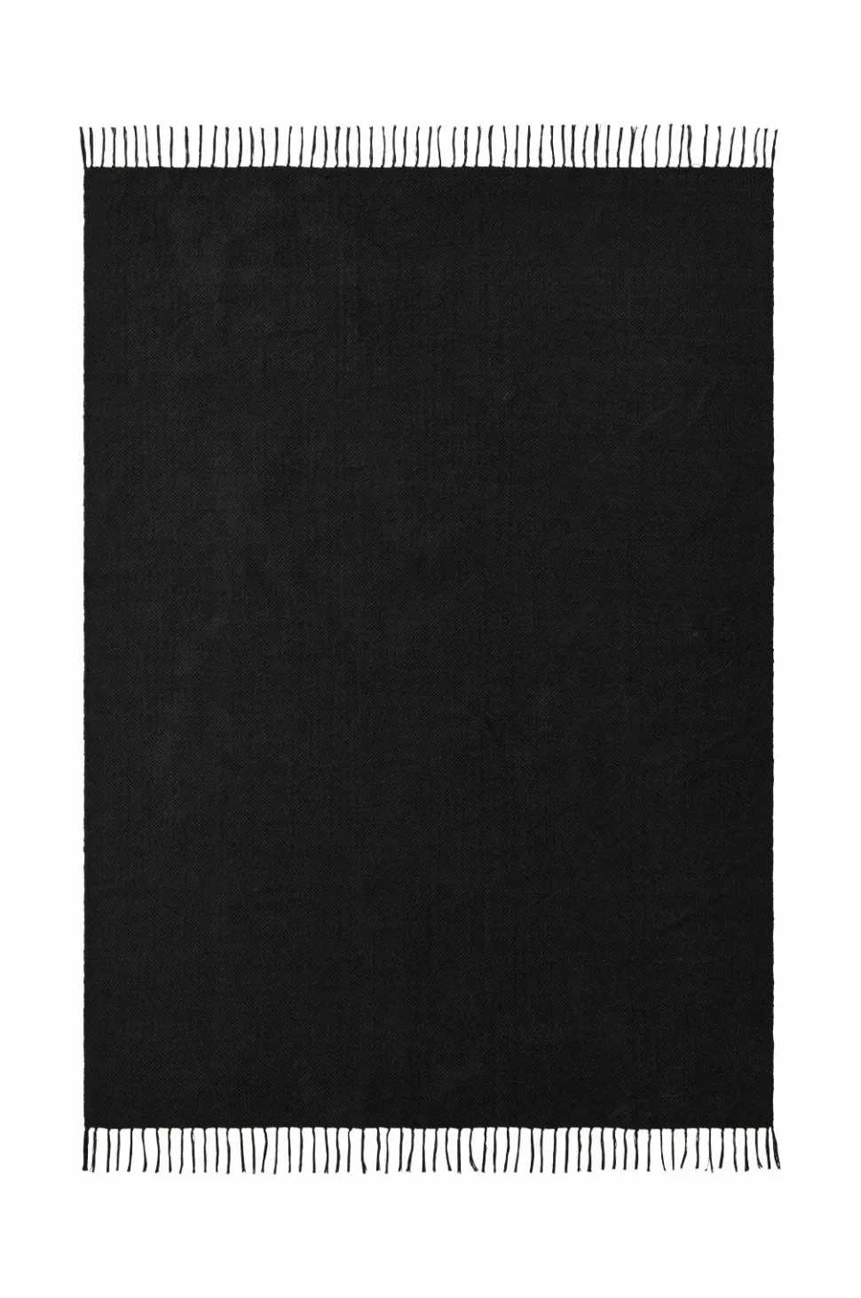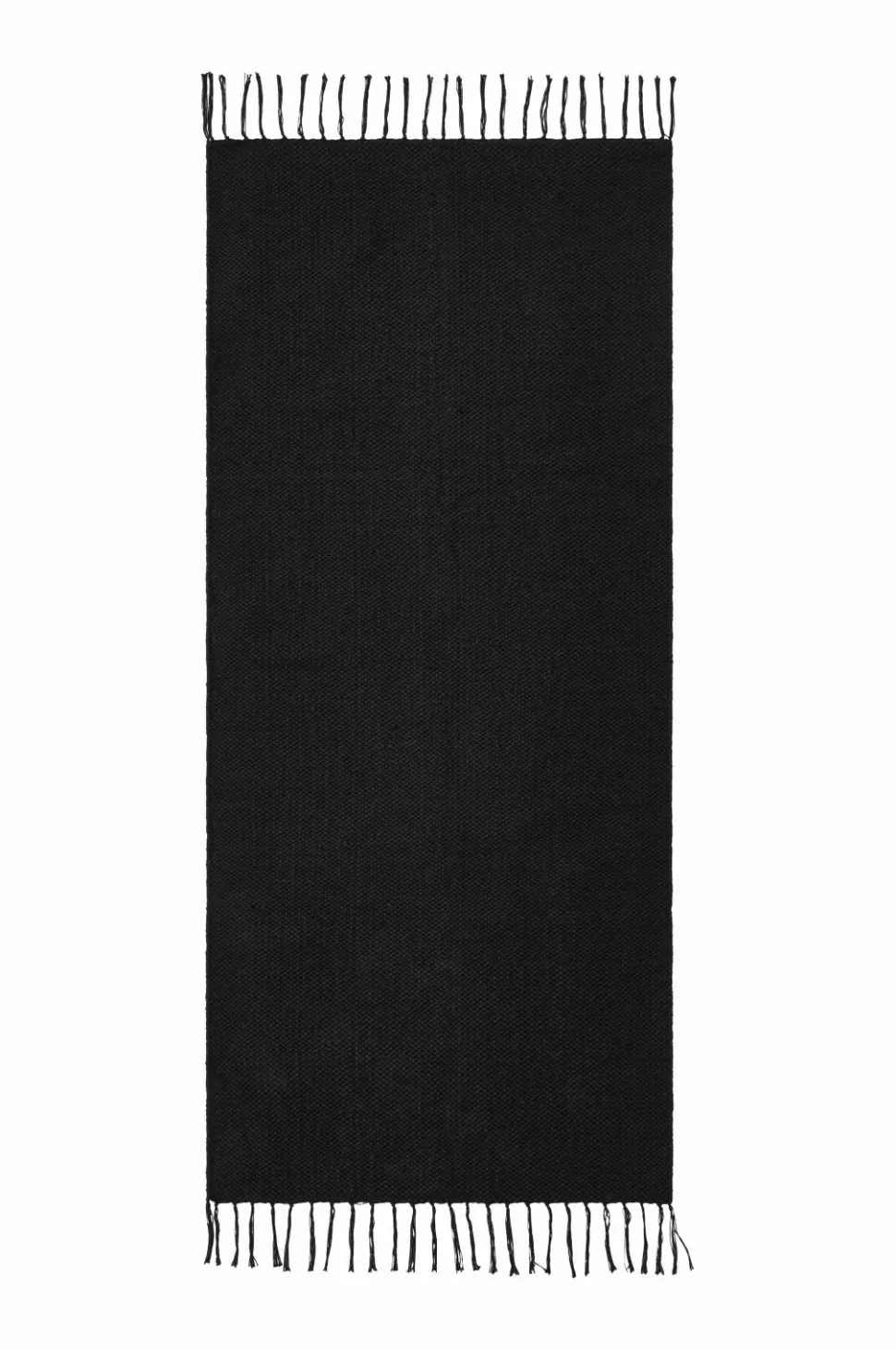 Glatvævet bomuldstæppe med farvede frynser. Højde 0,5 cm.