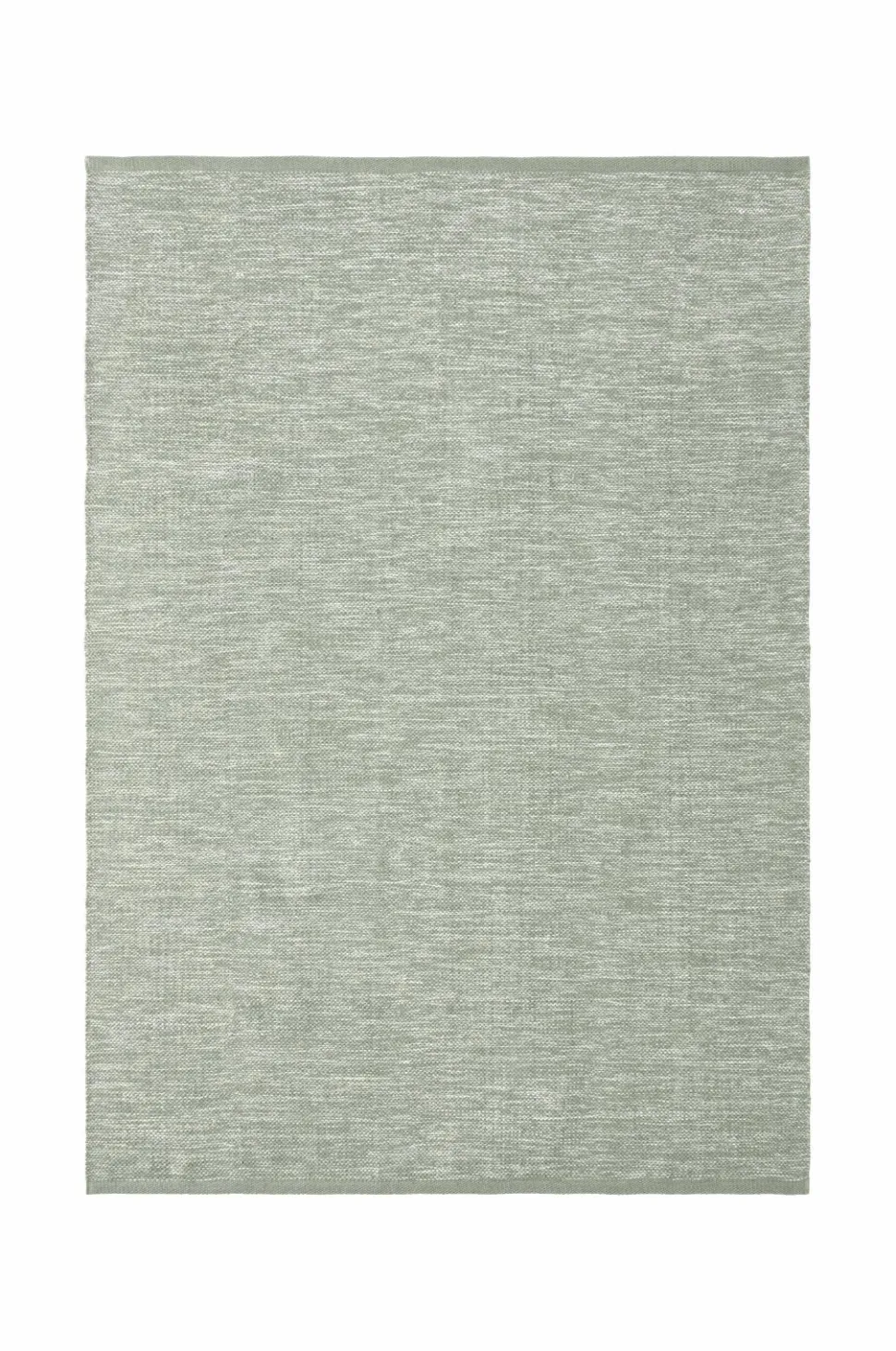 Glatvævet bomuldstæppe i melangefarvet garn med ensfarvede borter i enderne. Højde 0,5 cm.