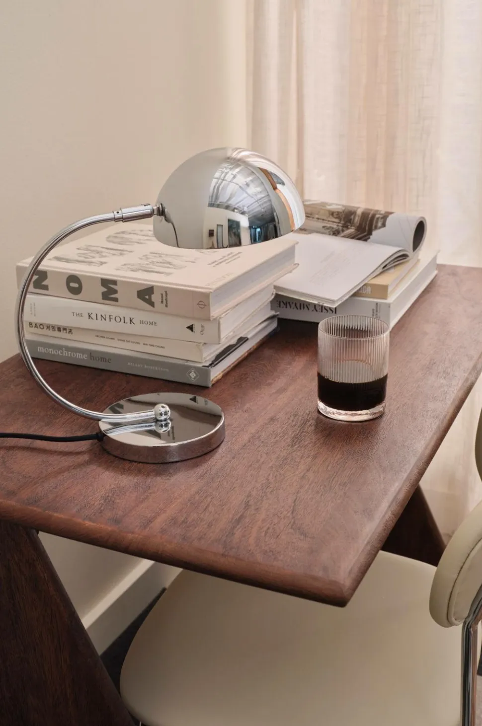 • Bordlampe i blankt, forkromet metal