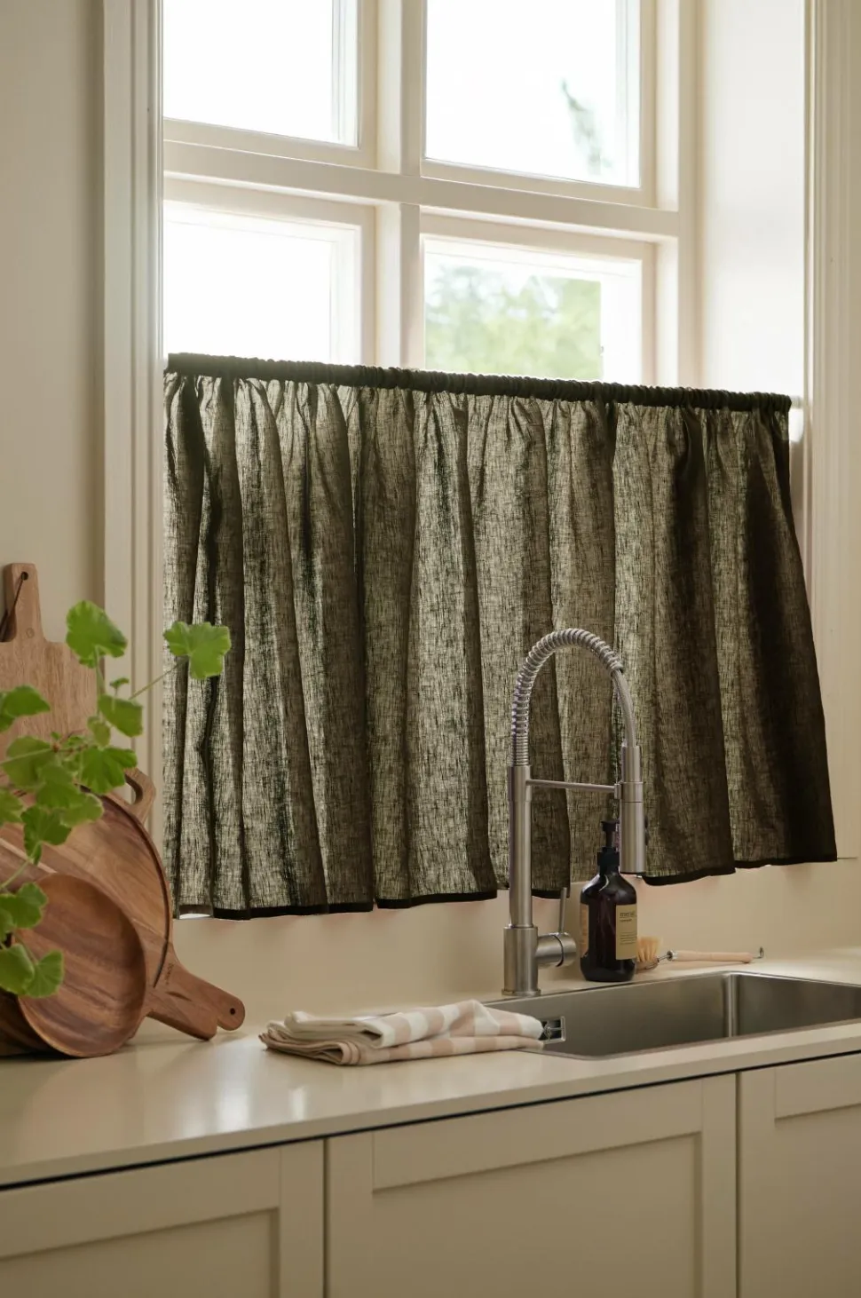 • Café-gardin i blød, vasket hør