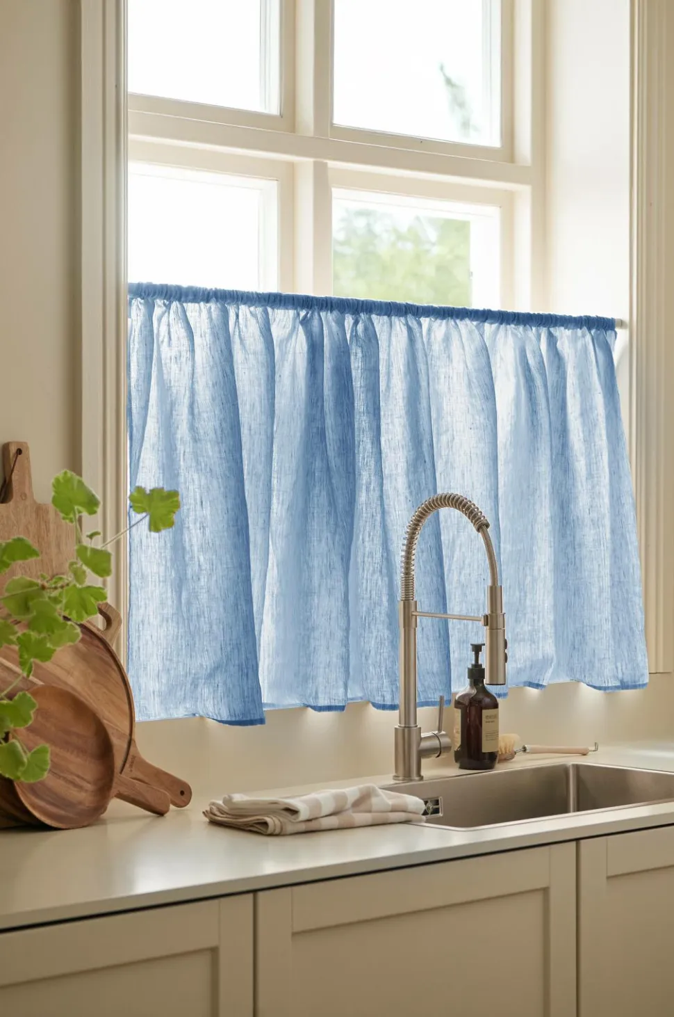 • Café-gardin i blød, vasket hør
