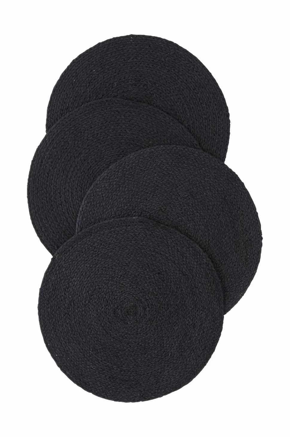 Runde dækkeservietter i 4-pak af flettet jute i blød kvalitet. Ø 38 cm.