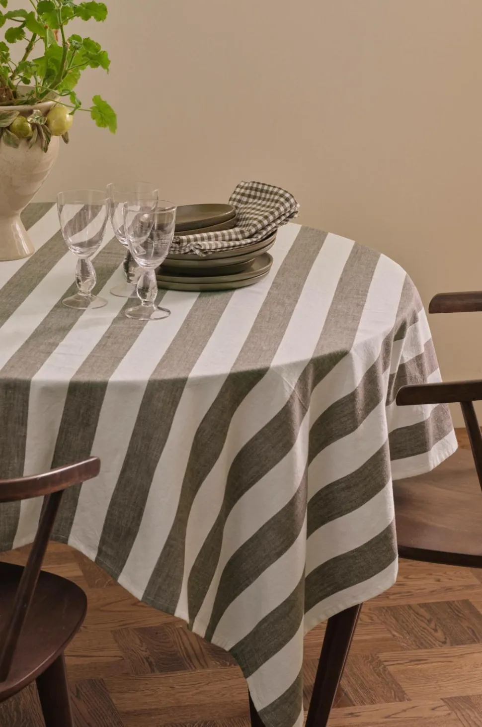 • Dug i bomuld med garnfarvede striber