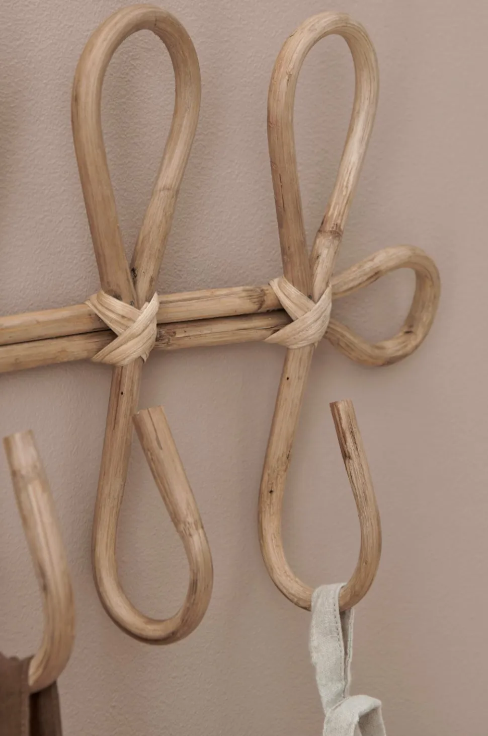 Knagerække af rotting med 6 kroge. Bredde 71 cm, højde 24,75 cm, dybde 8,25 cm. Hænges op med skrue eller vægkroge (medfølger ikke). Produktet er håndlavet, hvilket at der kan forekomme små forskelle i målene.