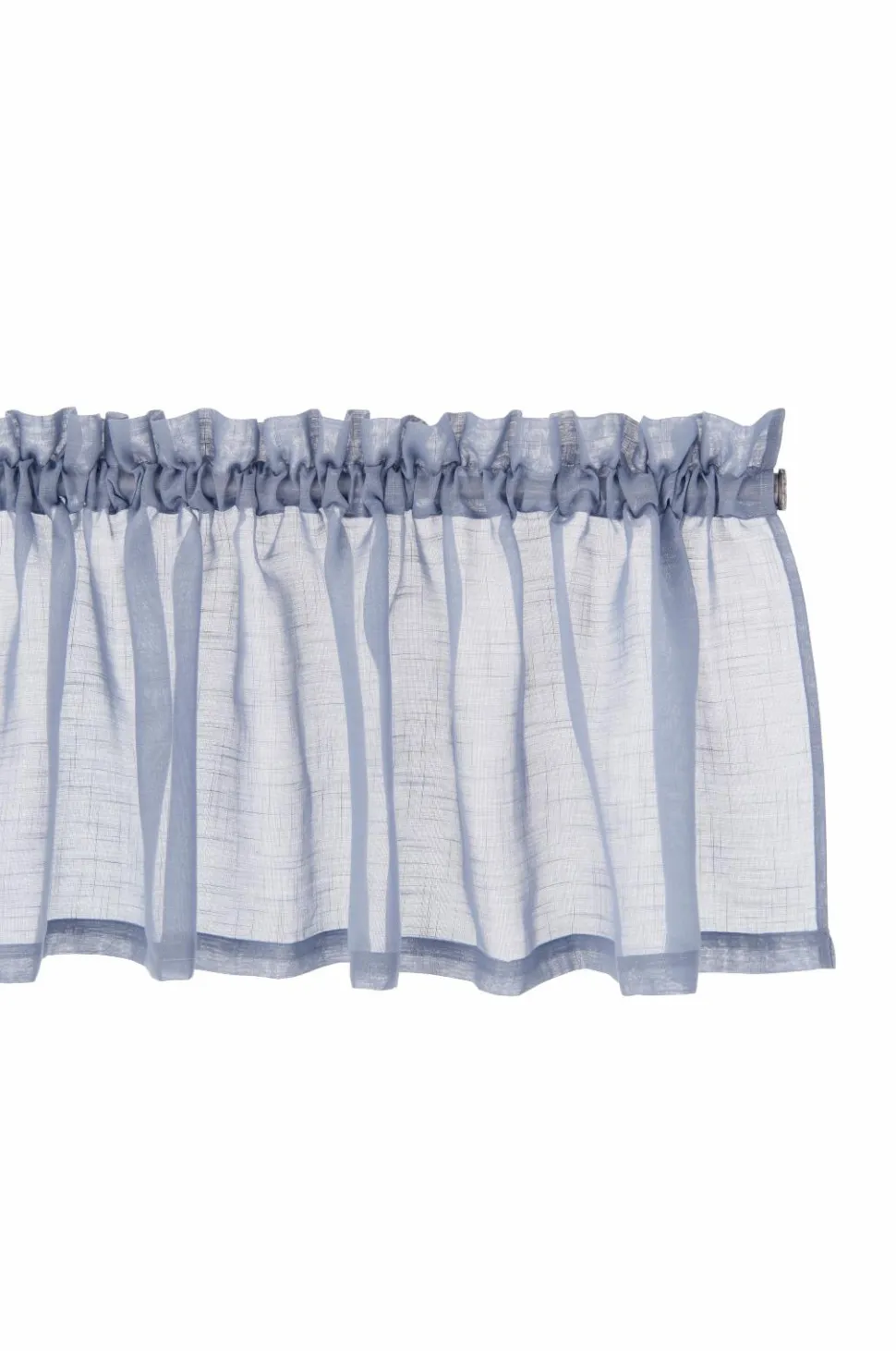 Kanalkappe af luftig polyester med struktur i hørlook. Løbegang med 5 cm rynkekant. Str. 50×250 cm.