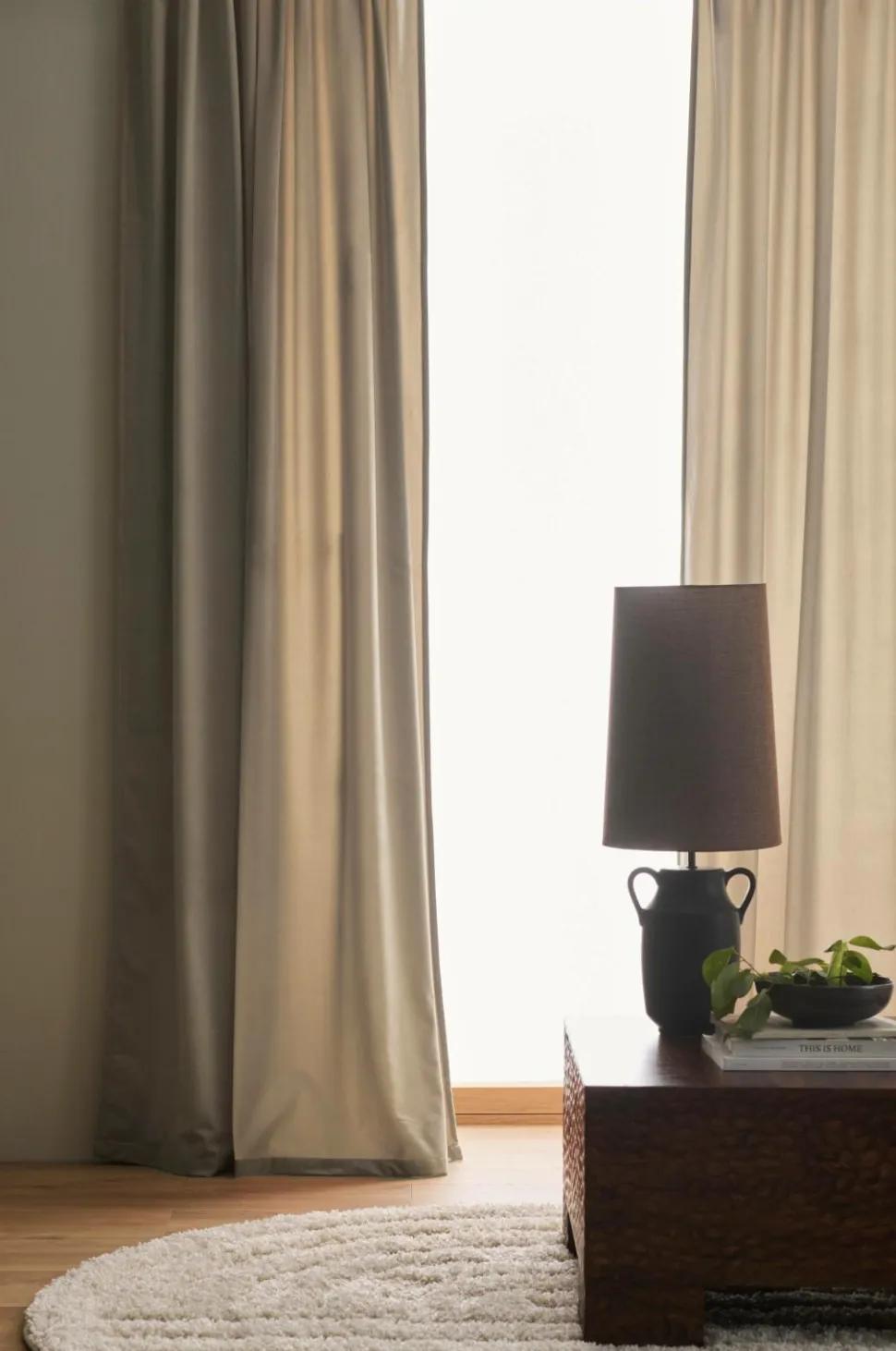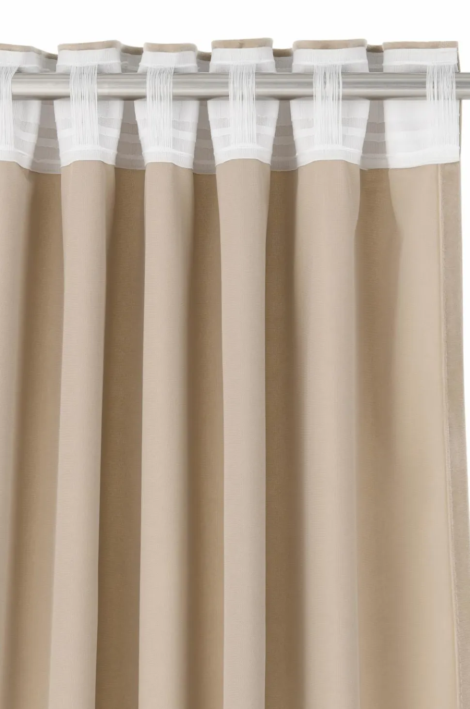 To multibåndslængder i velour med fin glans og blødt fald. Multibåndet gør, at du enten kan hænge gardinerne direkte på en gardinstang gennem de skjulte stropper eller anvende ringe, nålekroge eller fingerkroge. Snore i rynkebåndet gør at du let kan skabe ensartede, flotte læg. Bredde 140 cm. Tre længder: 220, 250 og 300 cm.
