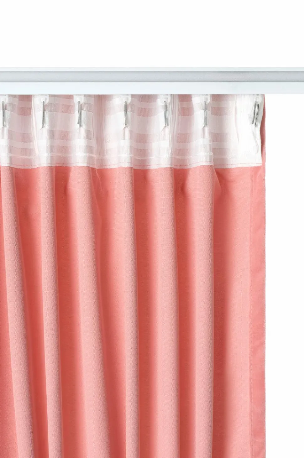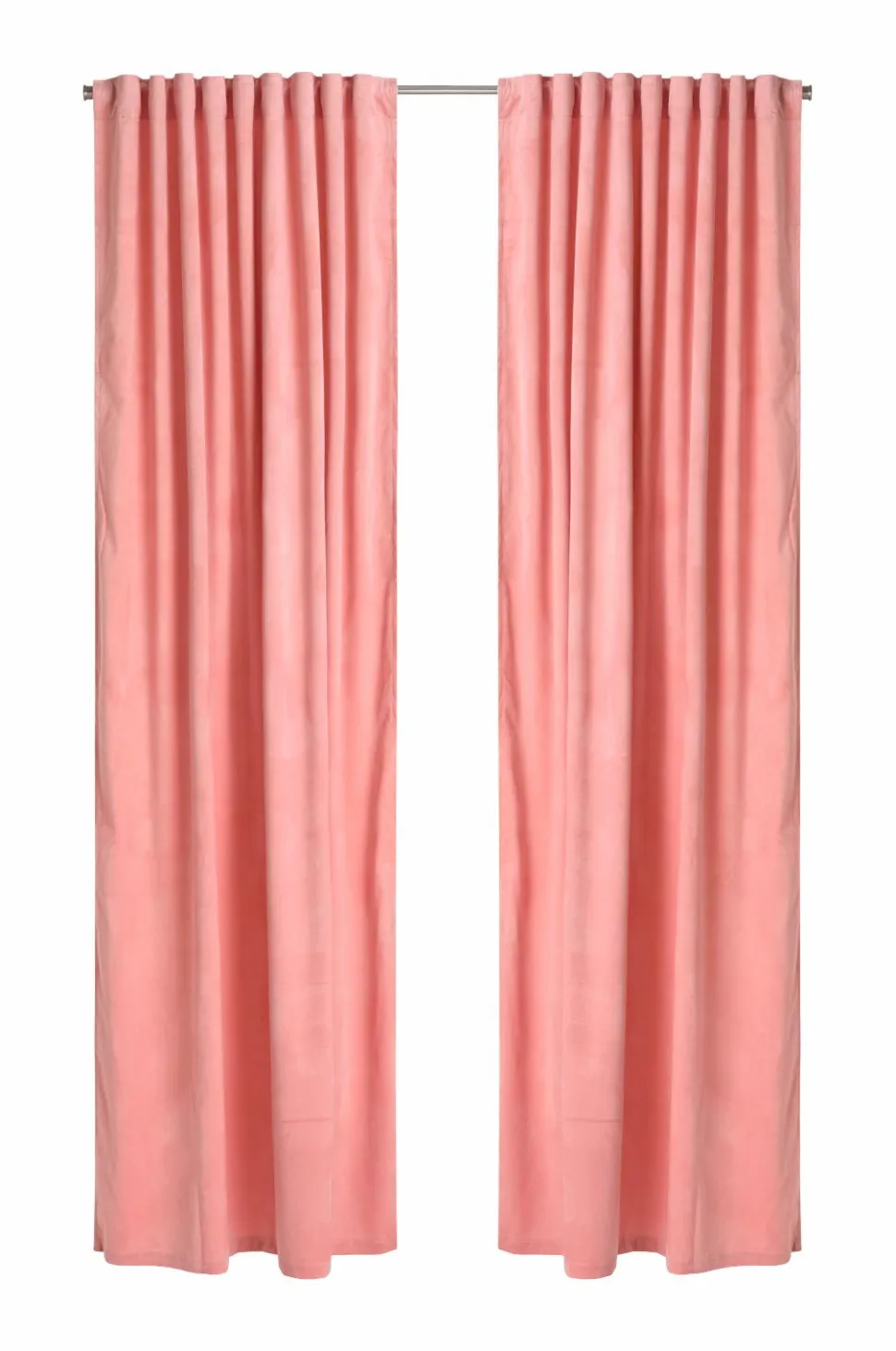 To multibåndslængder i velour med fin glans og blødt fald. Multibåndet gør, at du enten kan hænge gardinerne direkte på en gardinstang gennem de skjulte stropper eller anvende ringe, nålekroge eller fingerkroge. Snore i rynkebåndet gør at du let kan skabe ensartede, flotte læg. Bredde 140 cm. Tre længder: 220, 250 og 300 cm.