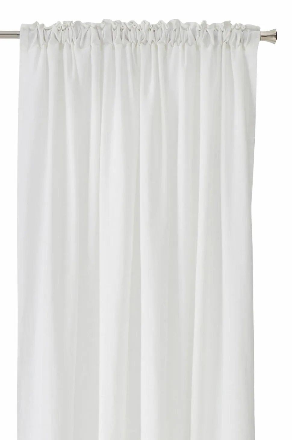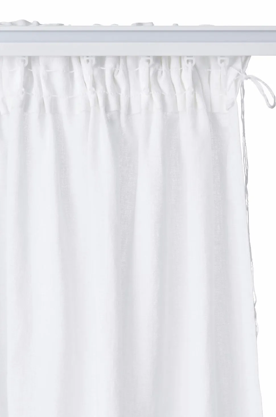To gardinlængder med rynkebånd i luftig og blød kvalitet af vasket halvlærred. Med kombibånd som gør, at du enten kan hænge gardinerne direkte på en gardinstang eller anvende rynkebåndskroge eller nålekroge (ikke fingerkroge). Snoren i rynkebåndet gør, at du let kan skabe ensartede, flotte læg. Bredde 145 cm. Tre længder: 220, 250 og 300 cm.