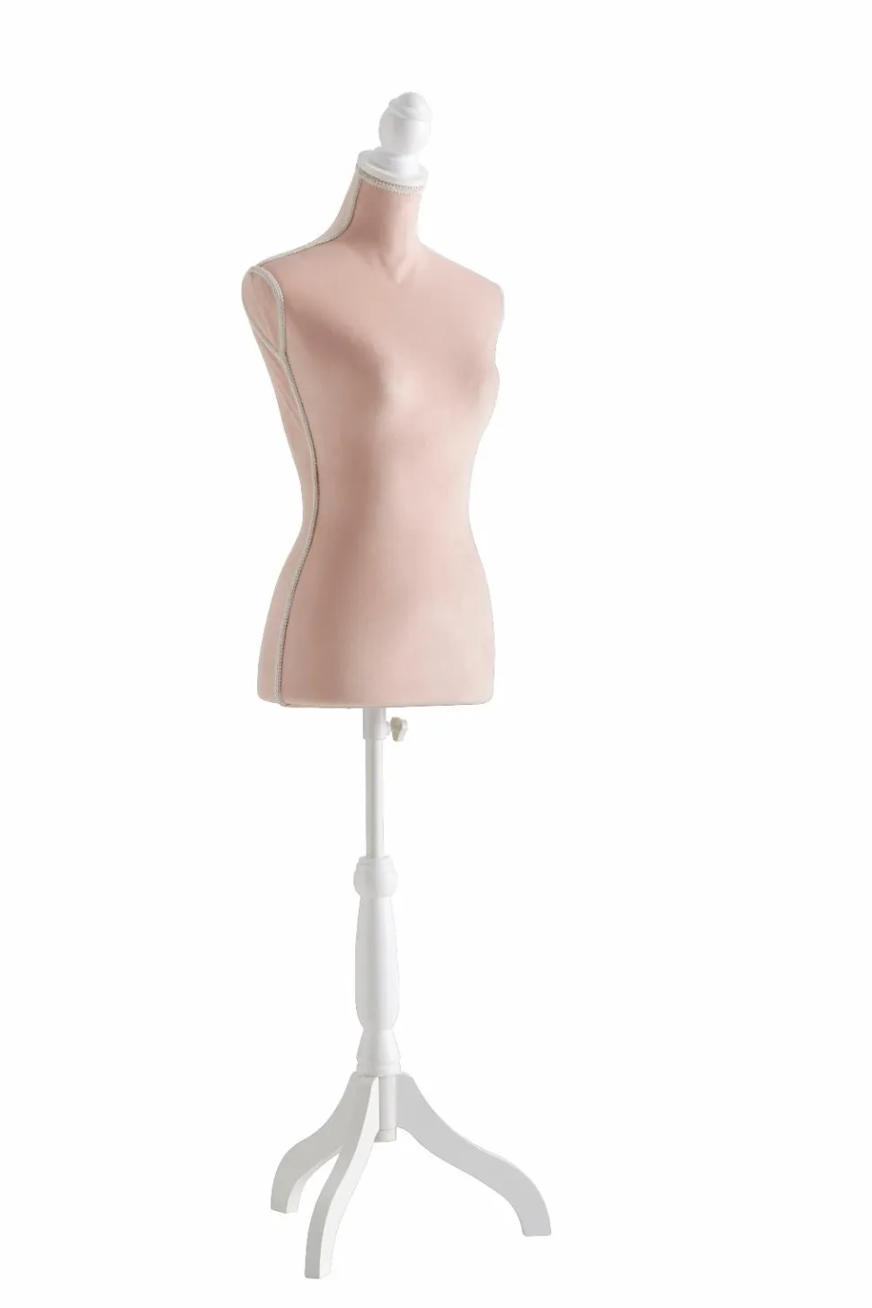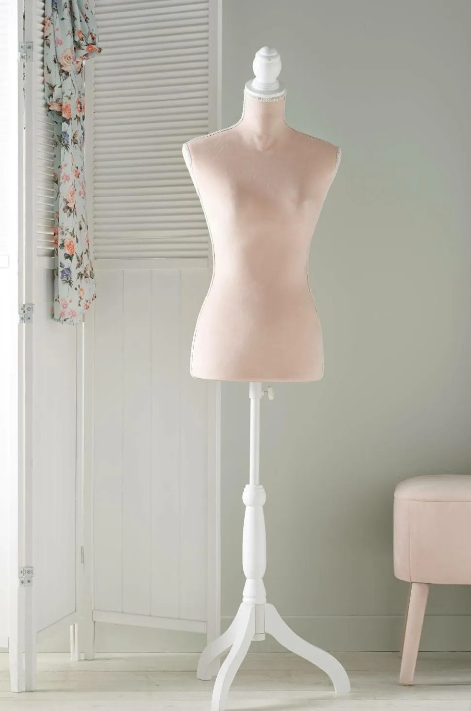 Gine af mdf og træ beklædt med plys af bomuld. Regulerbar totalhøjde 133-165 cm. Ginens mål: Bryst 87, talje 65, hofte 90 cm. Højde på kroppen 65 cm. Ø ved foden ca. 40 cm. Lev. usamlet. Produktet indeholder FSC-certificeret træ, som er fældet i et ansvarsfuldt skovbrug, der tager hensyn til mennesker og miljø.