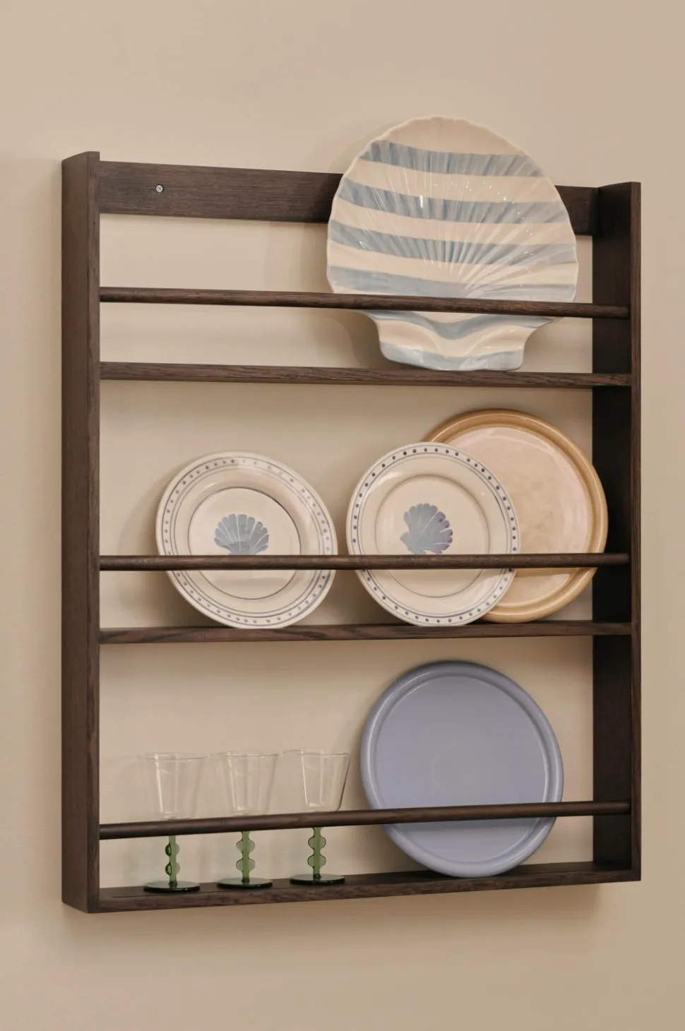 Hylde til tallerkener og andre ting i køkkenet. Også velegnet til andre rum, hvor der er brug for smart opbevaring i en flot hylde.