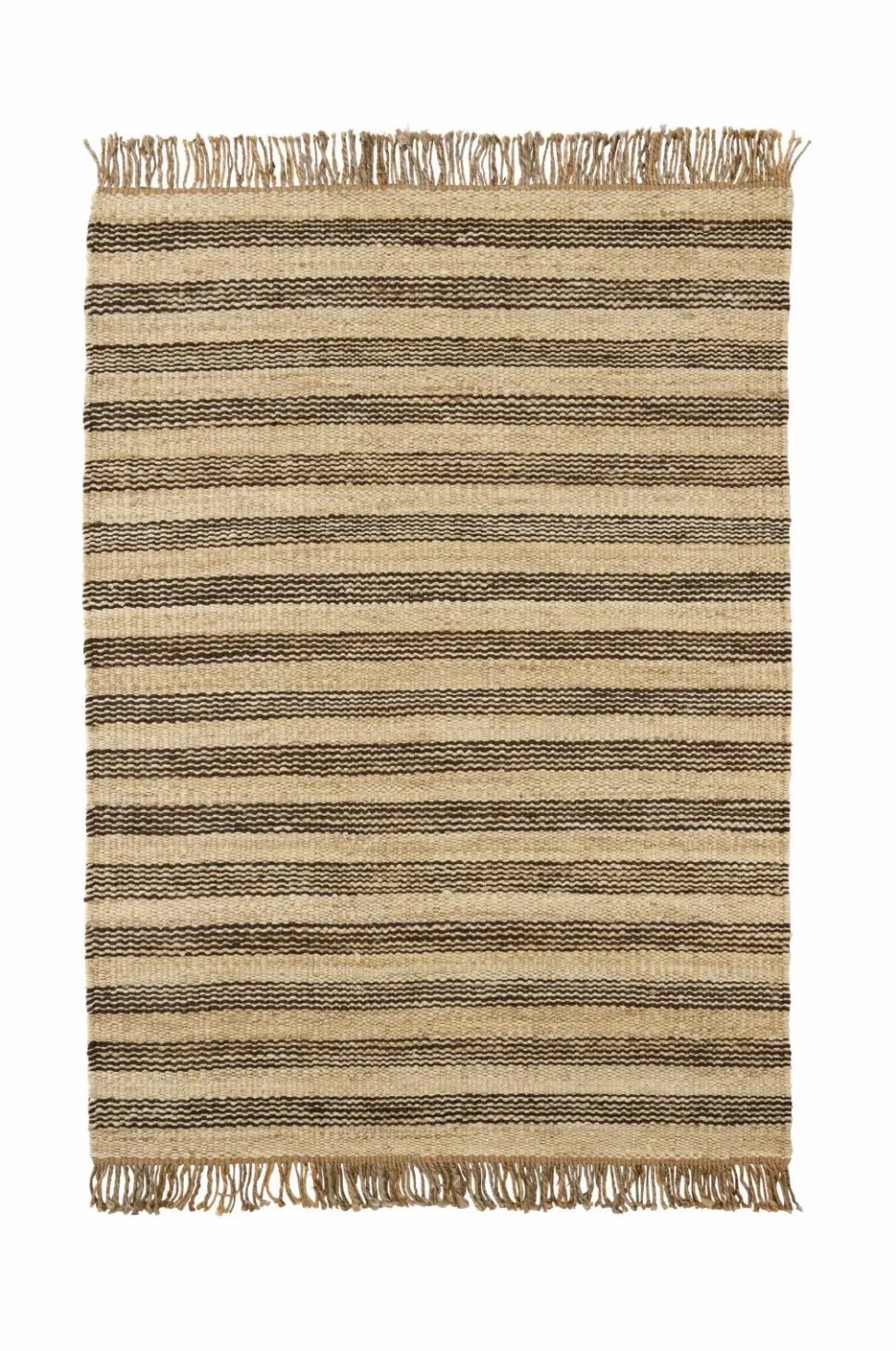 Vævet tæppe i 100% jute med frynser på kortsiderne. Trend af bomuld.