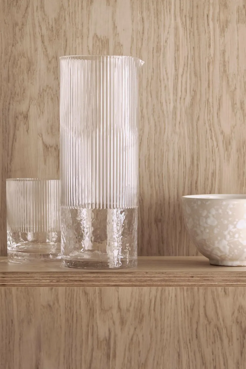 Karaffel med riflet overflade foroven og dekorativ struktur forneden. Volumen: 1250 ml.