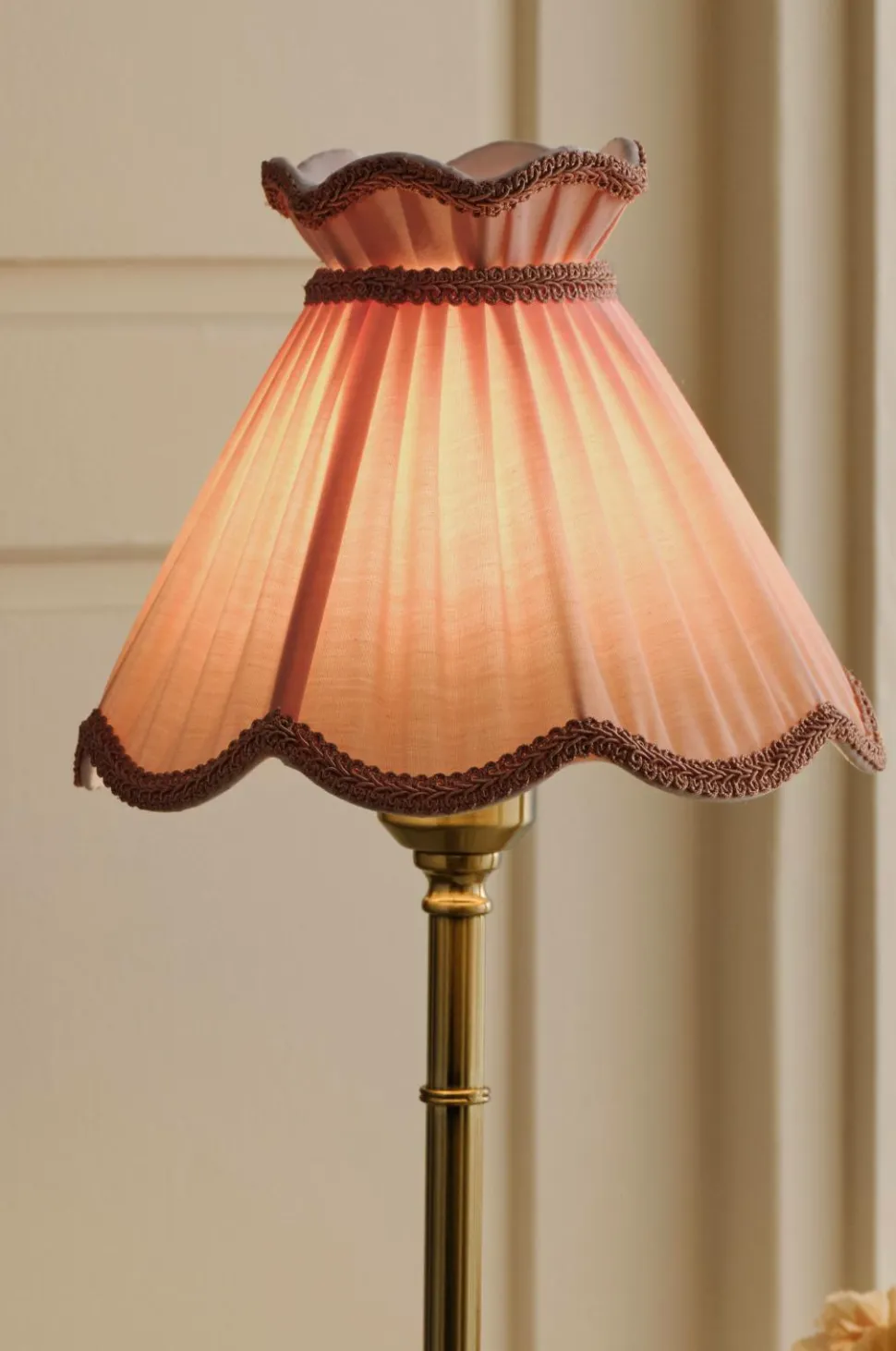 • Plisseret lampeskærm i tekstil med beklædt inderside og metalramme