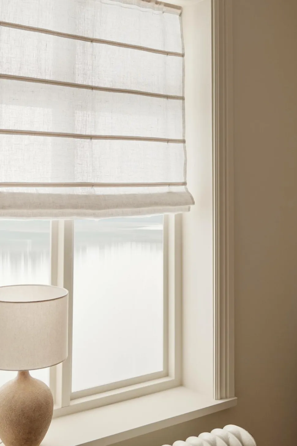 Liftgardin af hør i vasket, tynd vævet kvalitet. Leveres færdigmonteret med træpinde foroven og metalpinde forneden. Længde 160 cm. Findes i flere forskellige bredde.